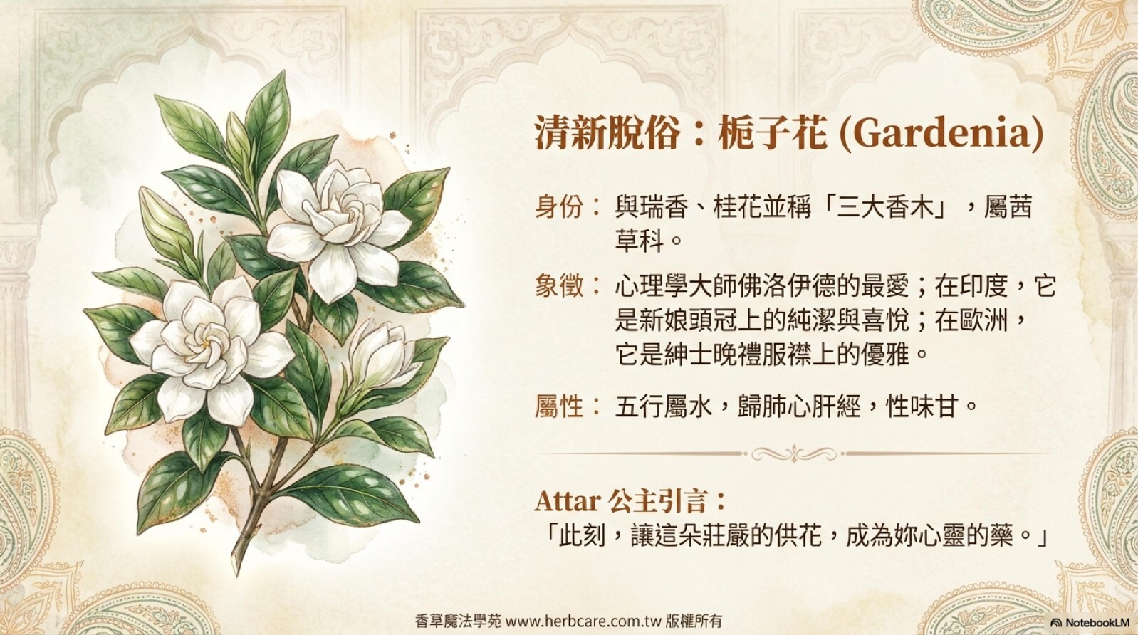 | 英文俗稱 | Gardenia Attar |
