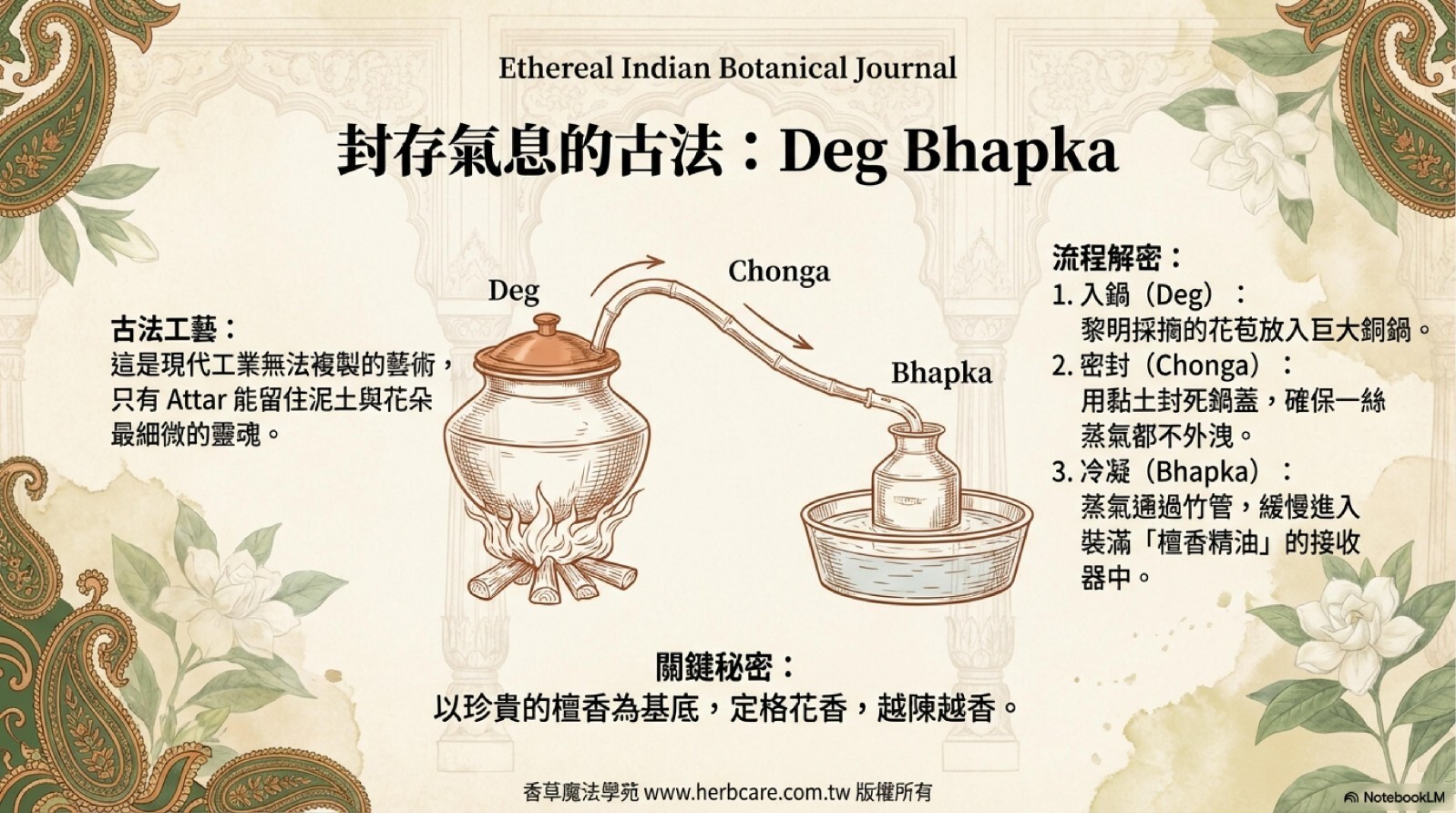 | 萃取工法 | 印度古法Attar提煉 |