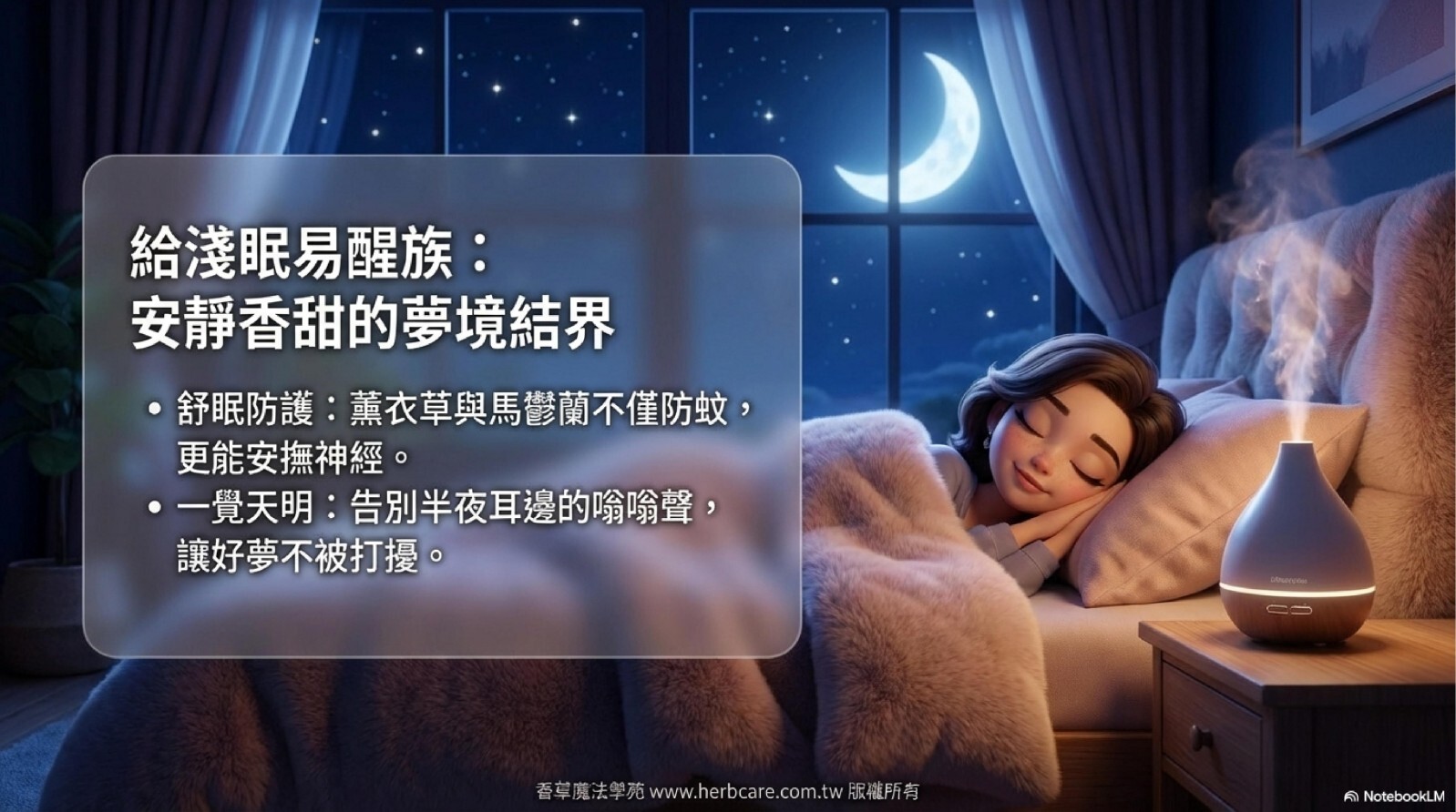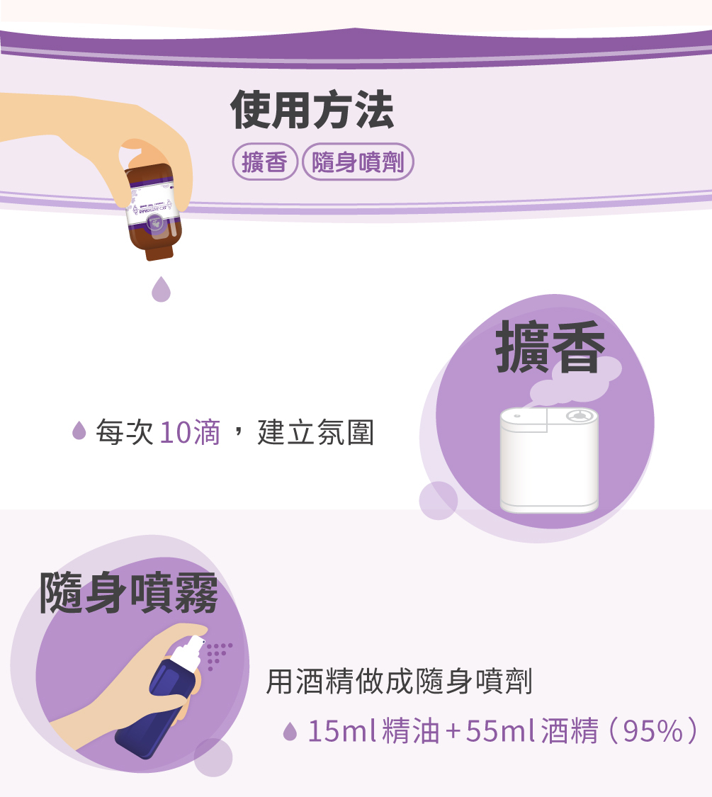 薰衣草與馬鬱蘭,都是歐洲芳療界知名的防蟲類精油,薰衣草由於氣味芳香,更是普及,兩者除了防蚊效果外,也有相當知名的安眠助眠效果,所以最適合用於夏夜時,驅蟲安眠一舉兩得。