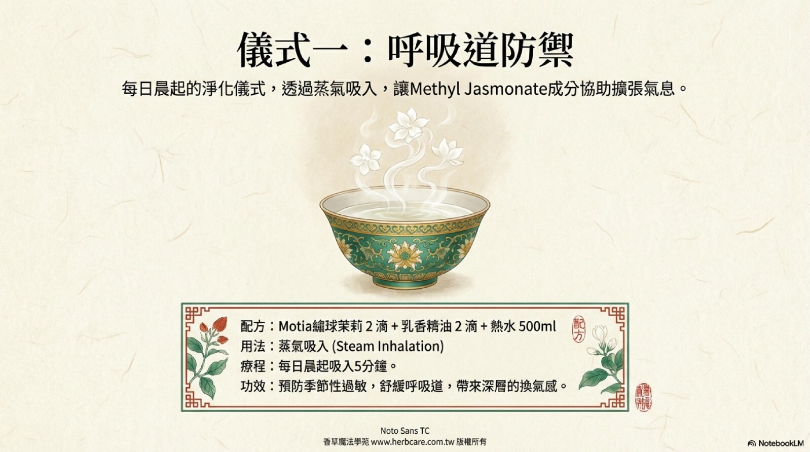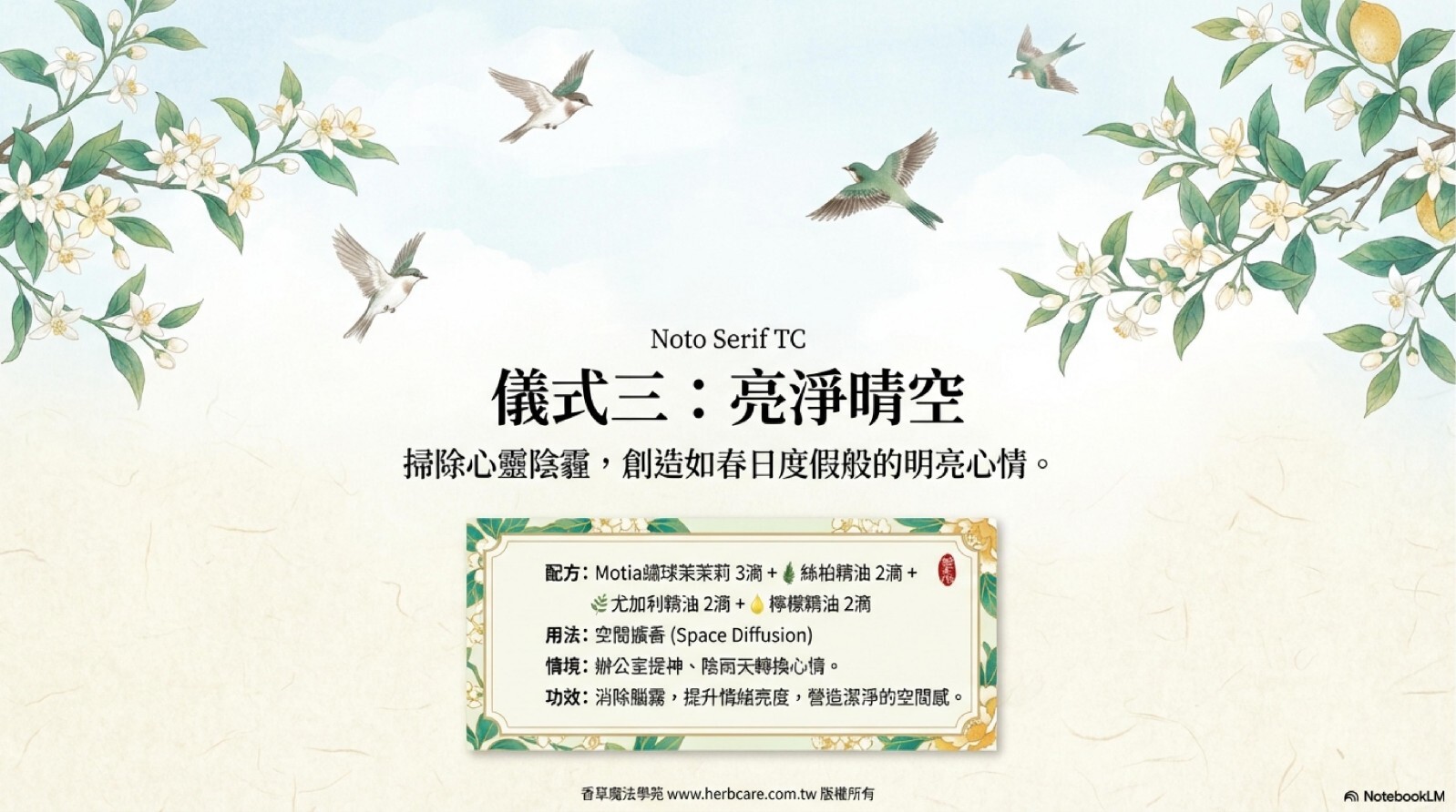 深邃花香與清新木香,幫助內心平靜,可輔助深度冥想,平衡身心能量。