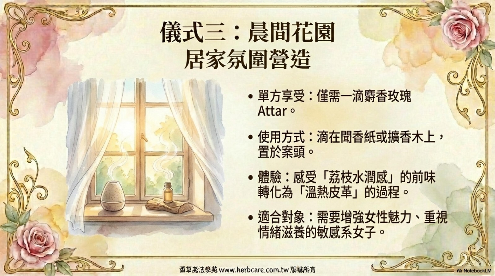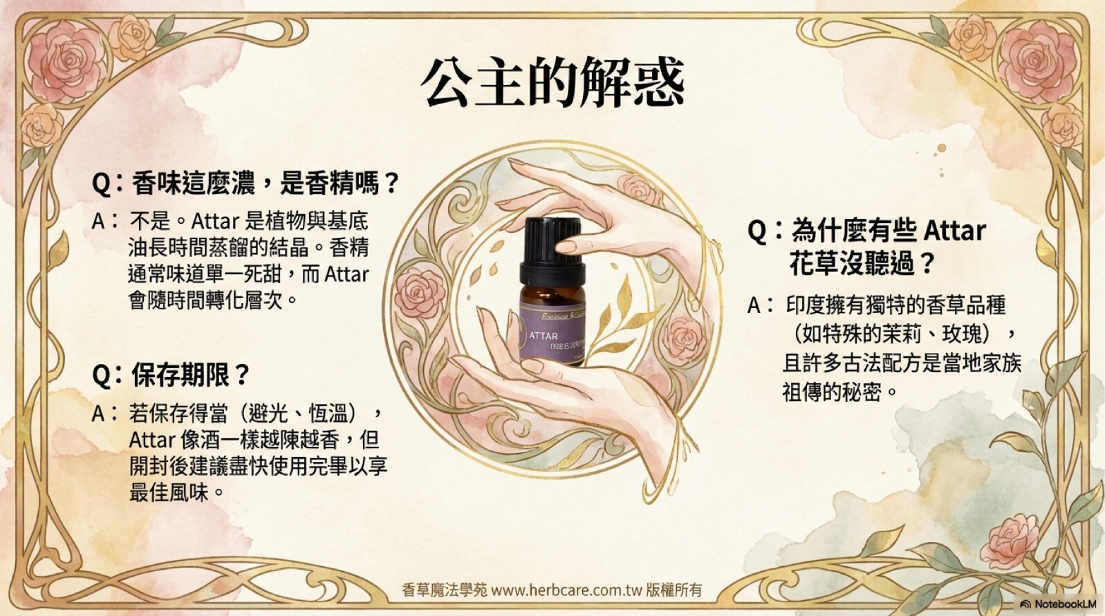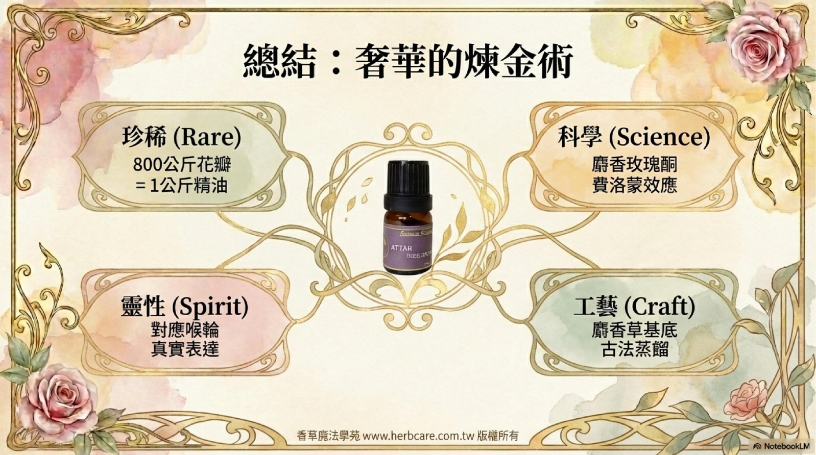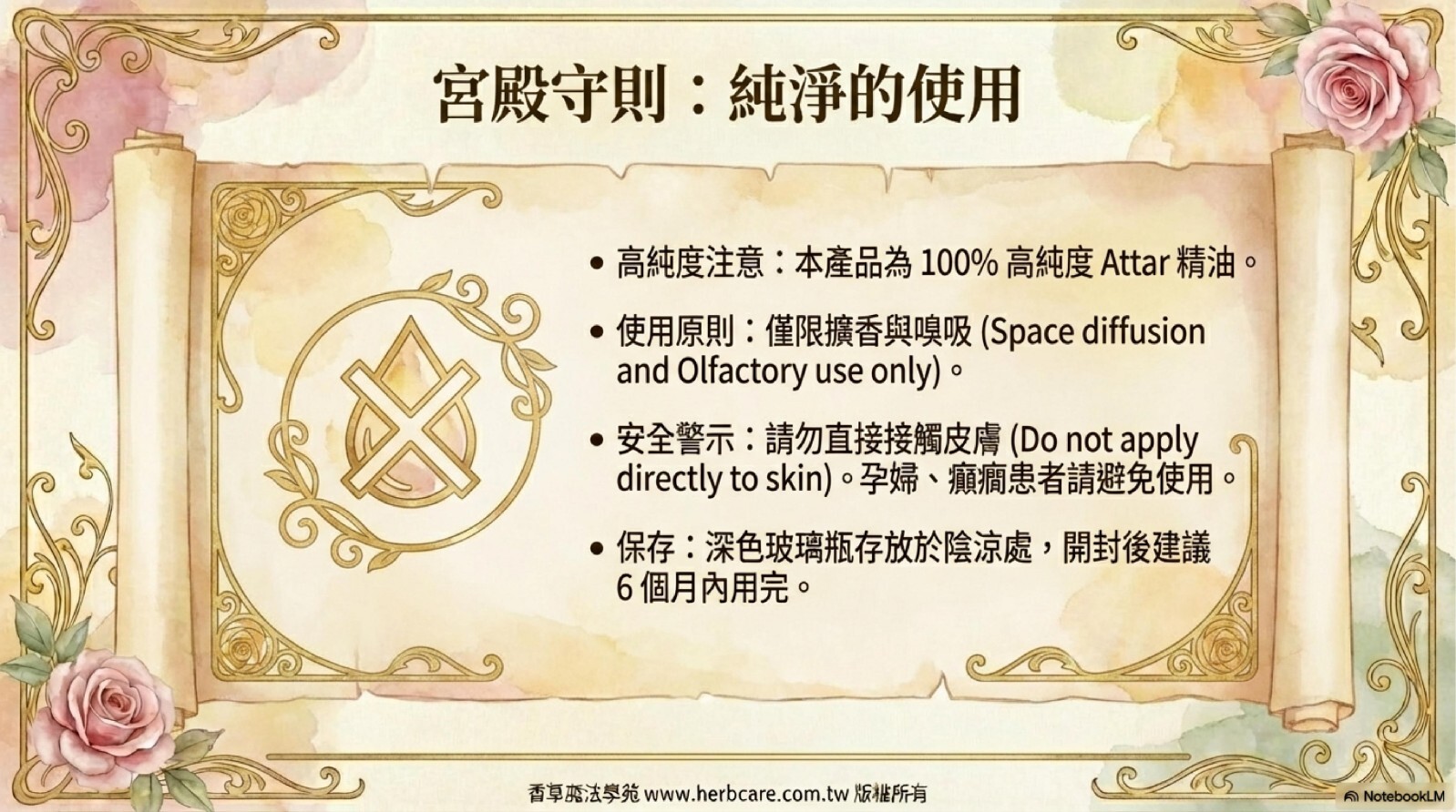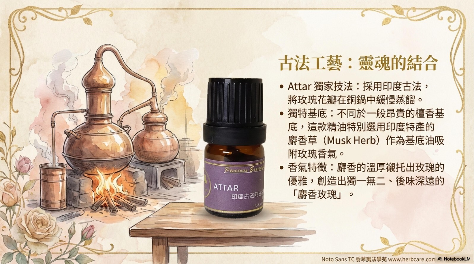 | 提煉方式 | Attar古法萃取(麝香草基底) |