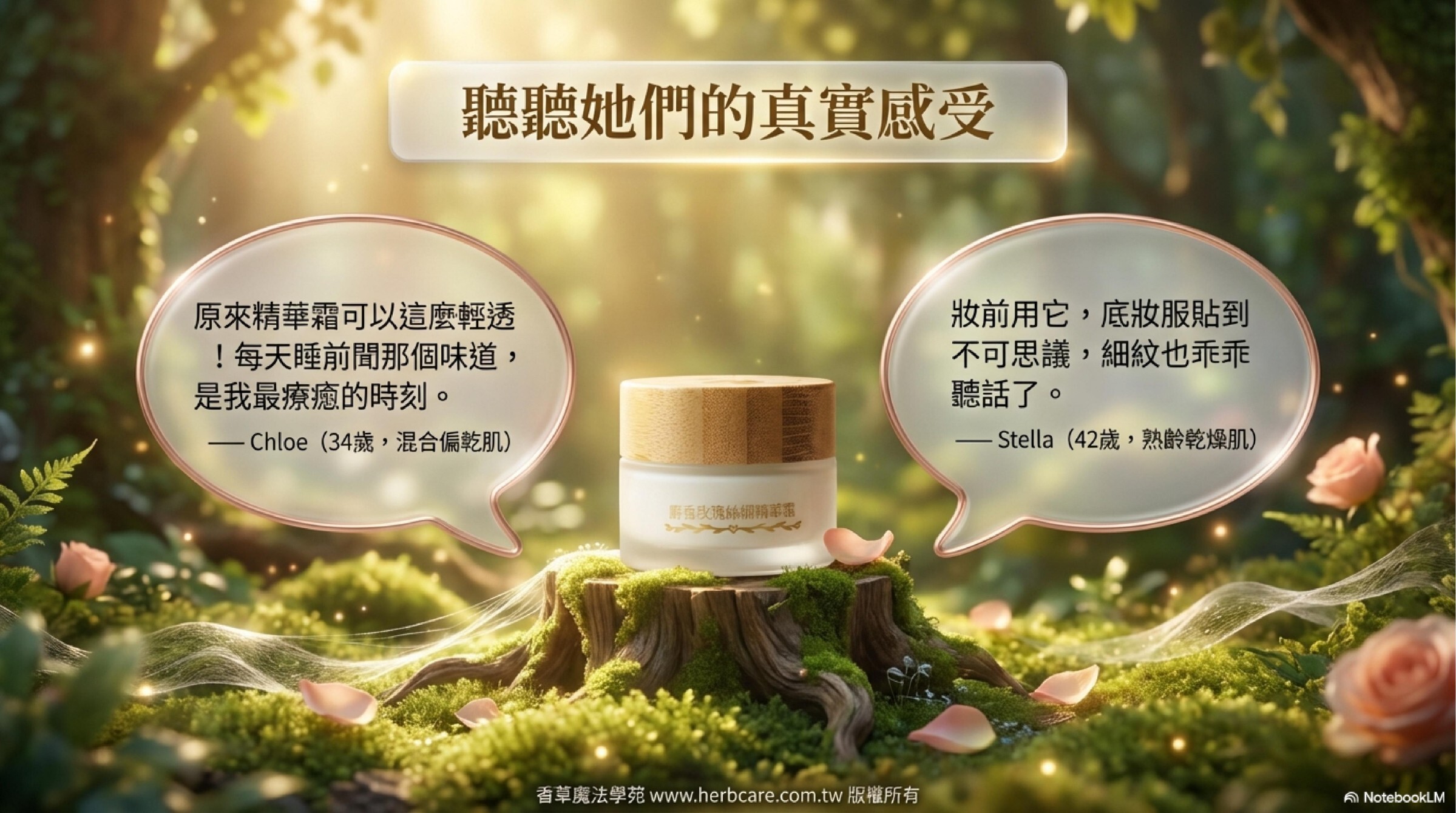 我們聽到了精油玩家們的心聲。這款【麝香玫瑰絲綢精華霜】,是專為「渴望滋潤但拒絕黏膩」的肌膚所設計。結合植物界的修復力量與生物科技的絲滑觸感,讓保養不再只是塗抹,而是一場讓肌膚「喝飽水」的奢華饗宴。