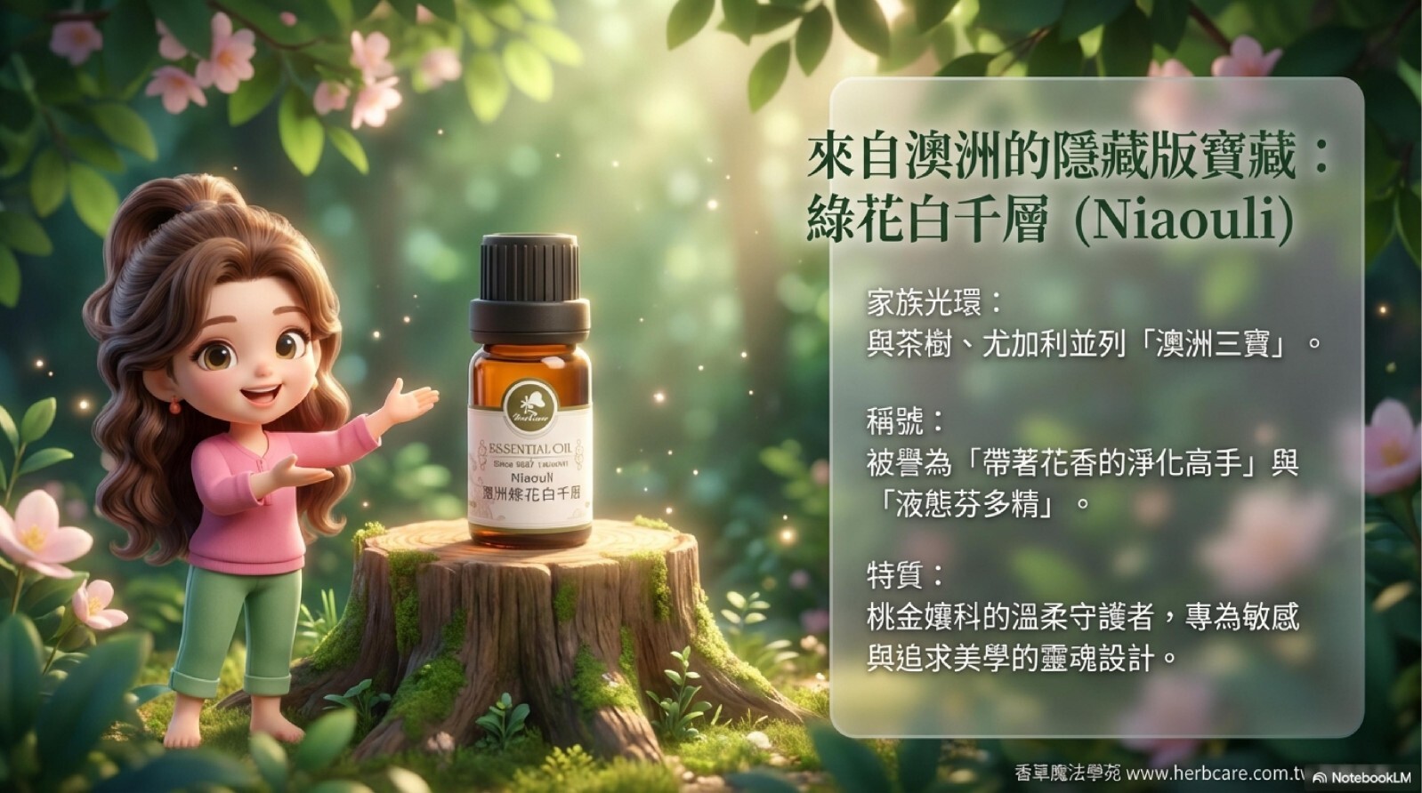 綠花白千層精油,這款來自澳洲的「液態芬多精」,正是你的天然空氣清淨機。它獨有的清新、帶有穿透力的藥草香氣,彷彿能瞬間打開你的呼吸道,為你帶來前所未有的暢快感。