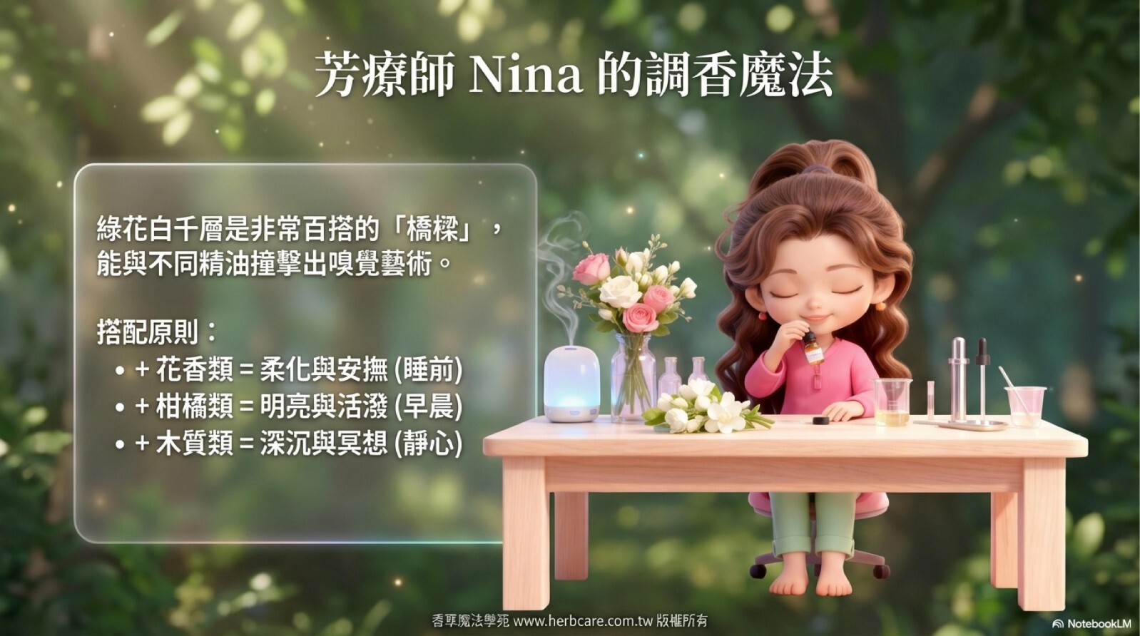 綠花白千層的溫暖香氣,可以與多種精油創造出不同的應用效果。