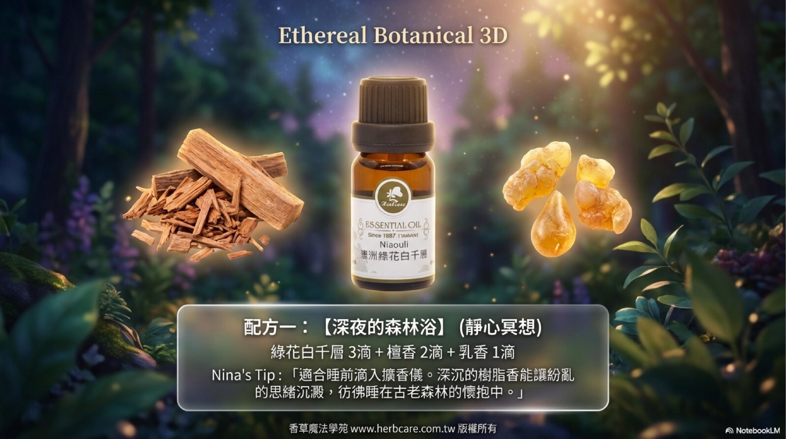 | 香氣特徵 | 草本清新、略帶藥草辛香 | 清新涼爽、樟腦樣、刺鼻 | 柔和藥草調,比尤加利更溫潤甜美 |