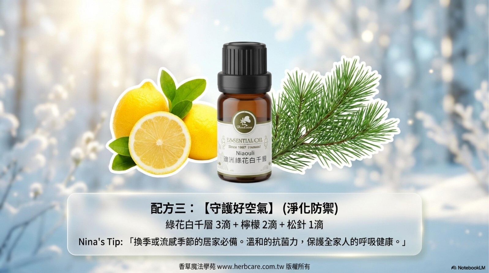 | 呼吸系統 | 幫助鼻塞、支氣管炎(次於尤加利) | 最強,化痰、通鼻竇、抗病毒 | 適合慢性支氣管炎、兒童咳嗽 |