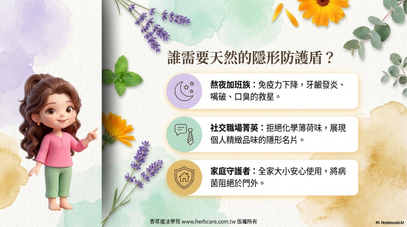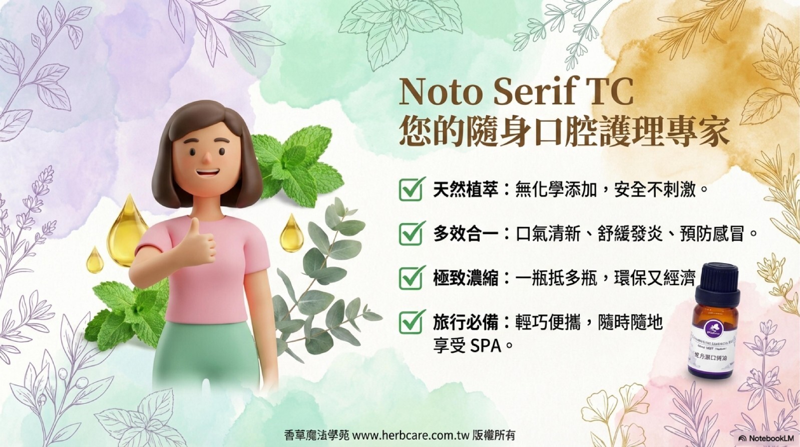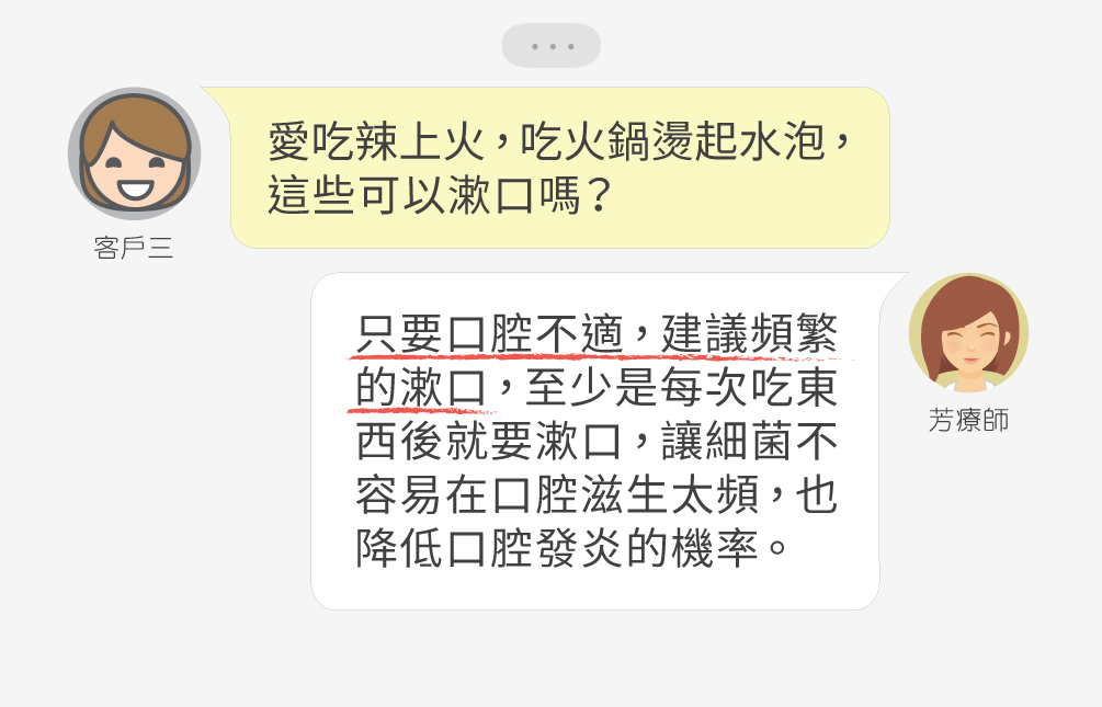 因親友中有人罹癌需進行化療,看到漱口精油介紹,特別買了三瓶,希望能緩和親友在療程中口腔的不適,另外自己本身只要睡眠不足自體免疫差,會有嘴破情形,經使用潄口精油後也能減輕疼痛感,刷牙後當潄口水保持口氣清新效果也很好~推薦