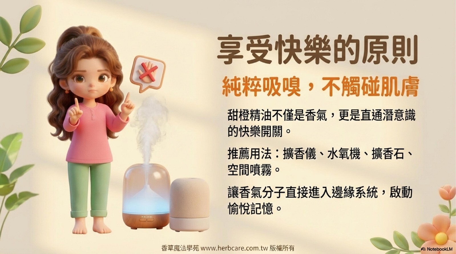 | A5: 甜橙精油的光敏性極低,可以說是柑橘類精油中最安全的。但若為安全考量,仍建議塗抹後8-12小時內避免長時間陽光曝曬,特別是敏感膚質。 |