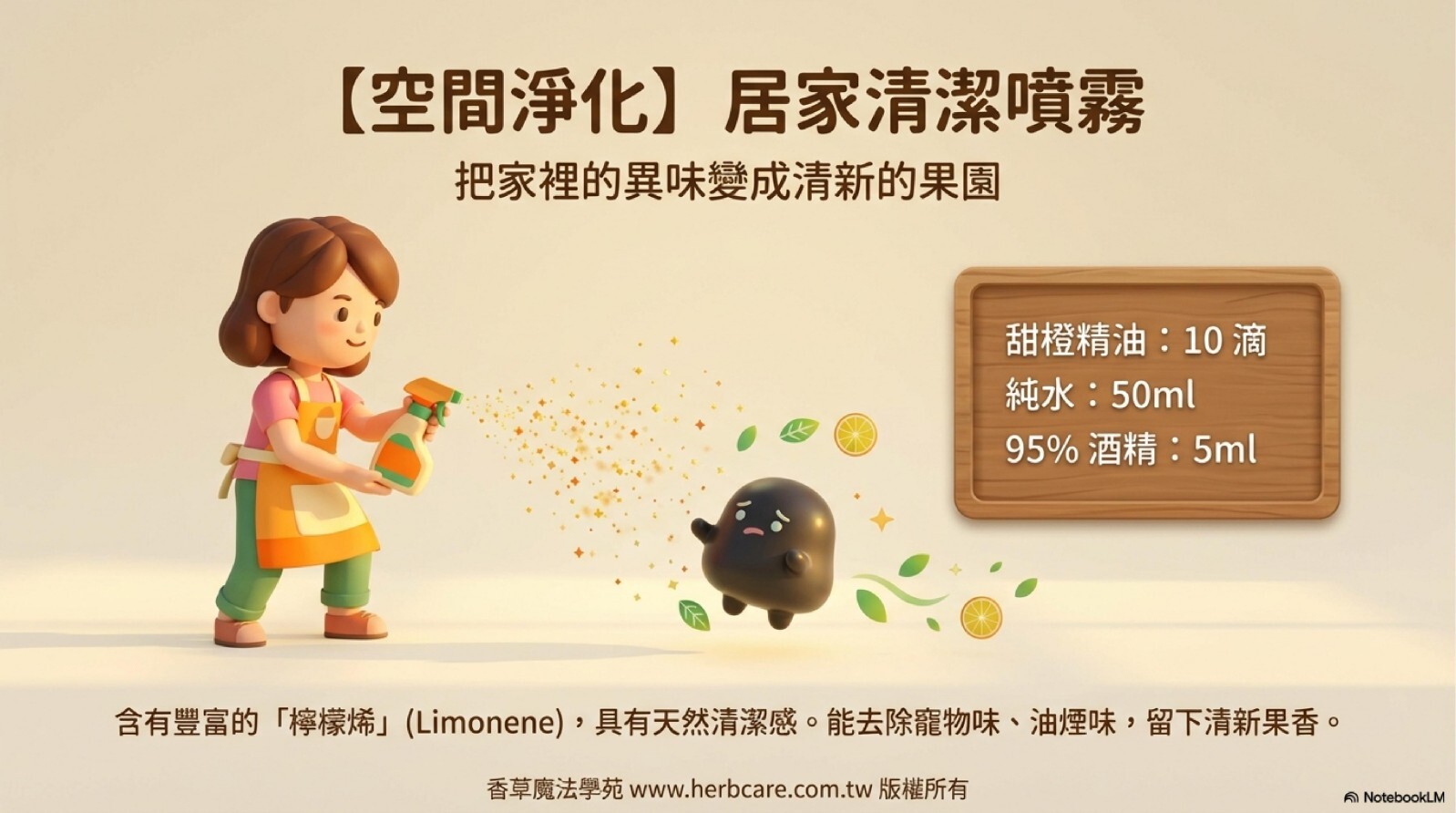 | Q3: 甜橙精油適合用來清潔環境嗎? |