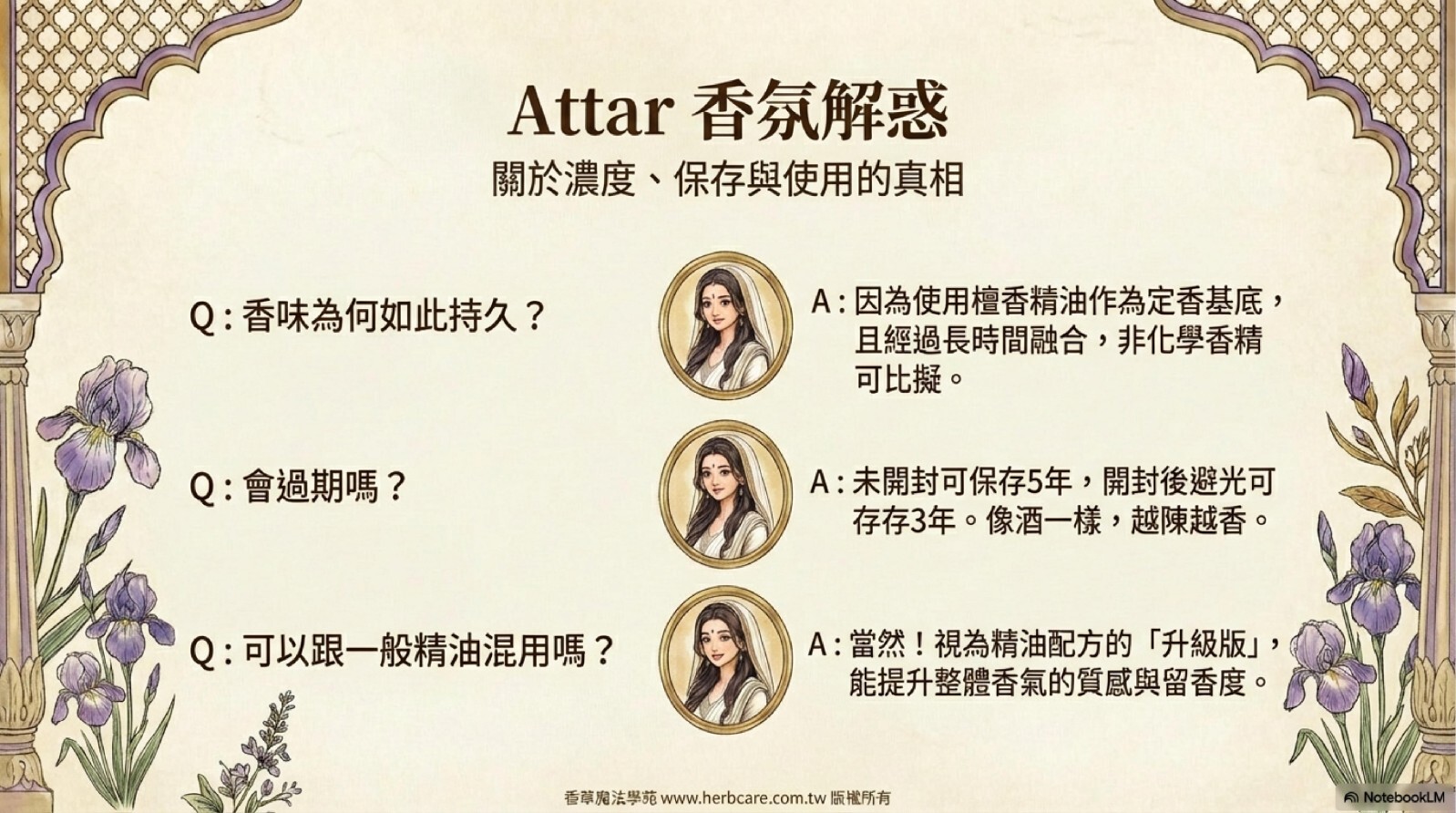 但是Attar畢竟是植物提煉,當然不是化學香精可以比擬,我們可以從以下這幾點來比較。