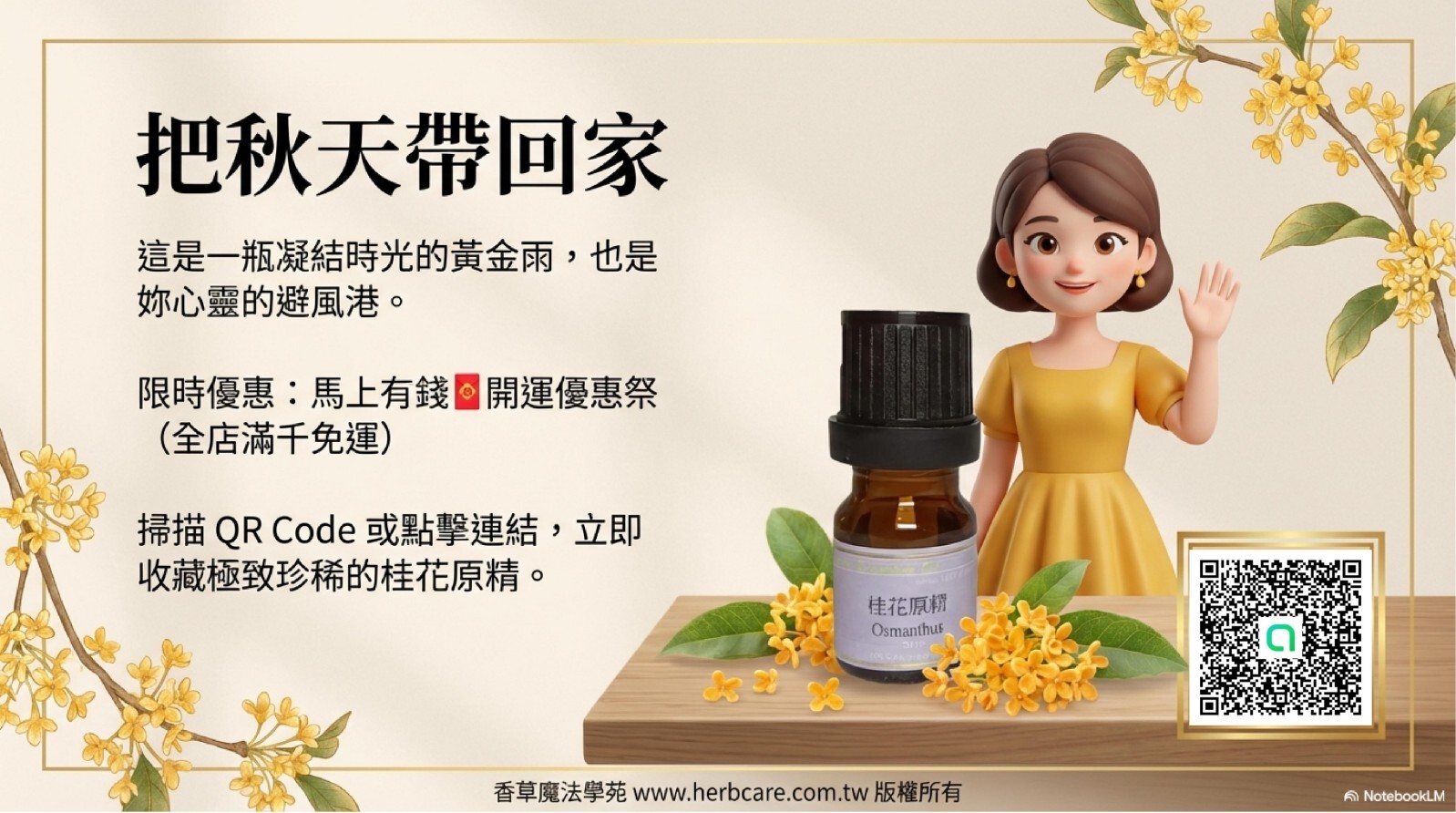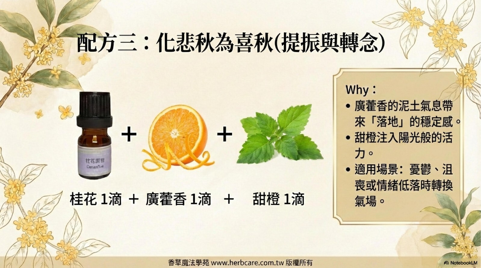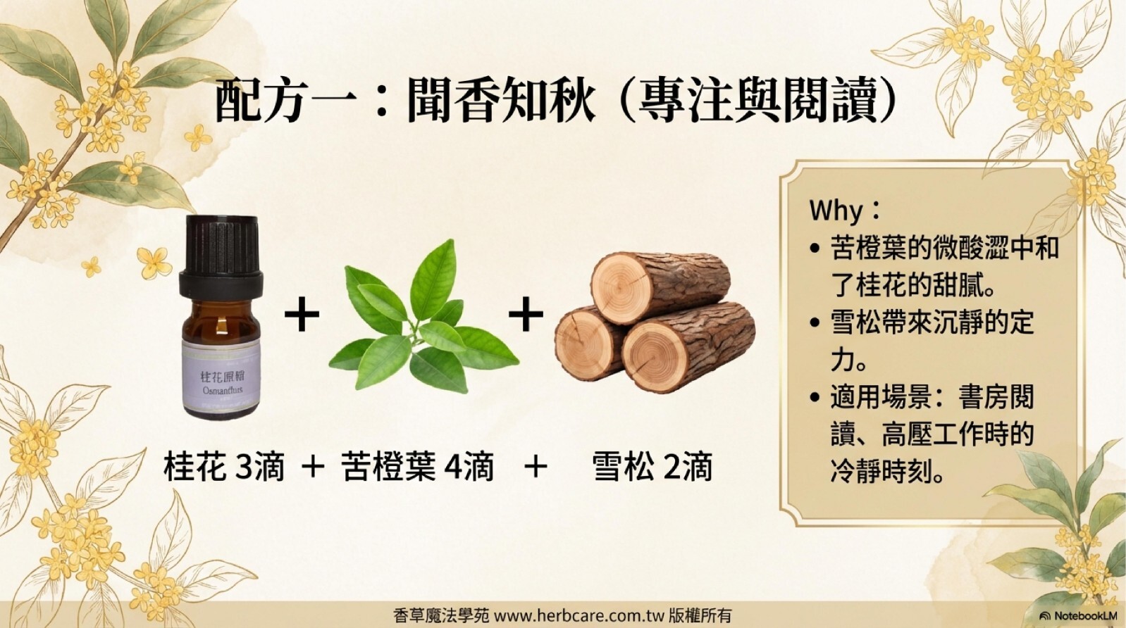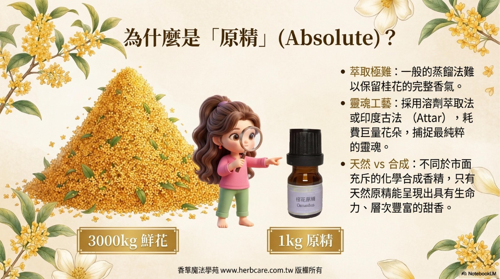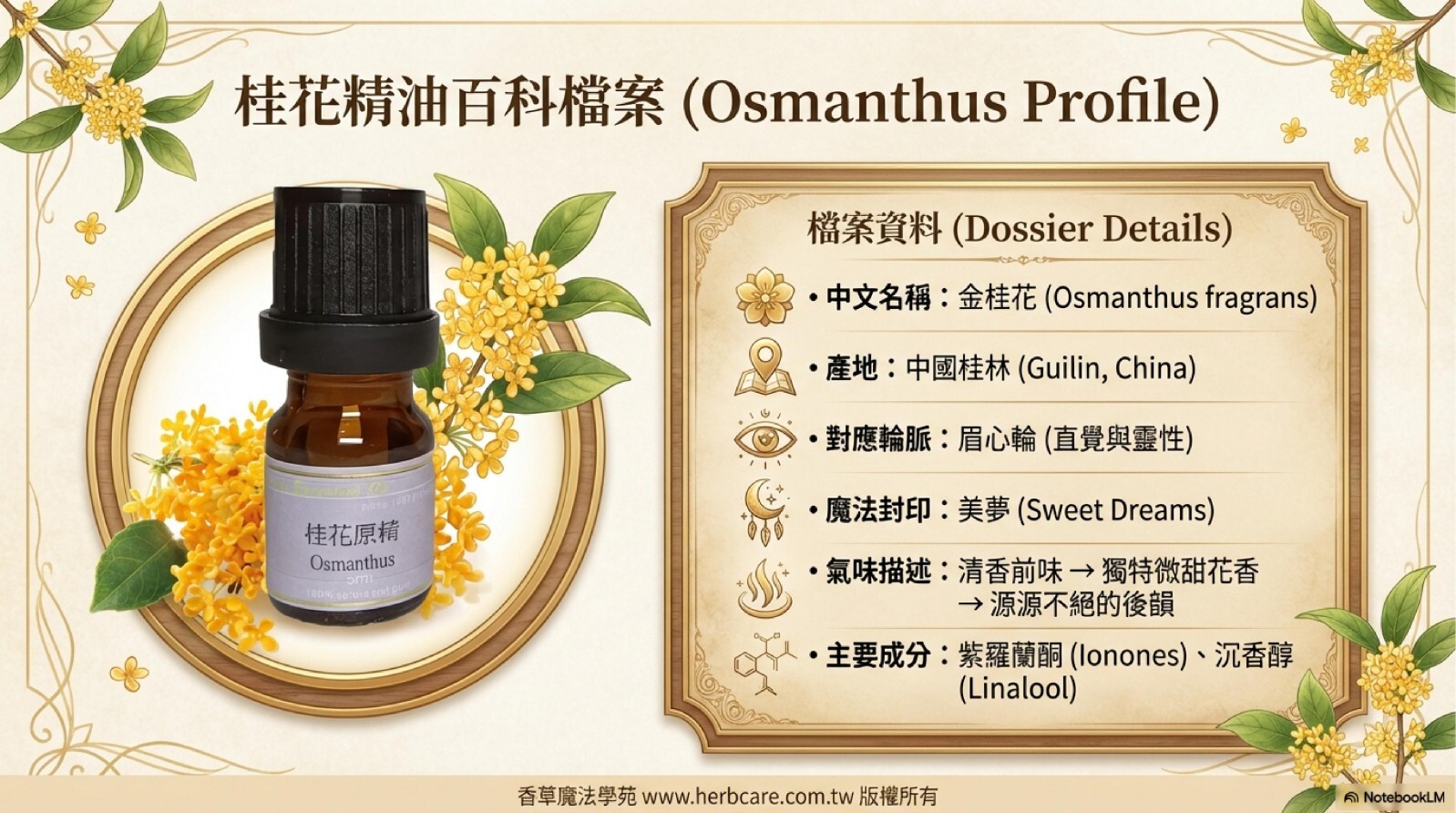 桂花是我們熟悉的香味但是卻又是相當難萃取的精油,本站獨家引入桂花原精精油,最頂級的桂花飄香,現在可以收藏在你家。