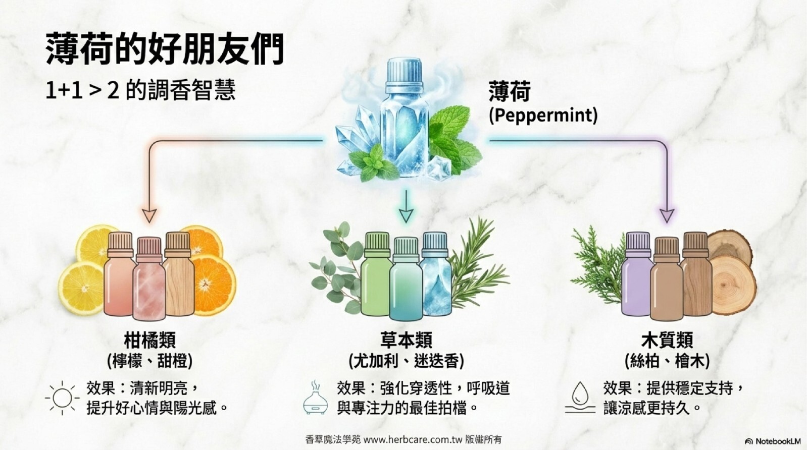薄荷精油應用廣泛,不論是提神醒腦或居家護理,都能找到適合的搭配。