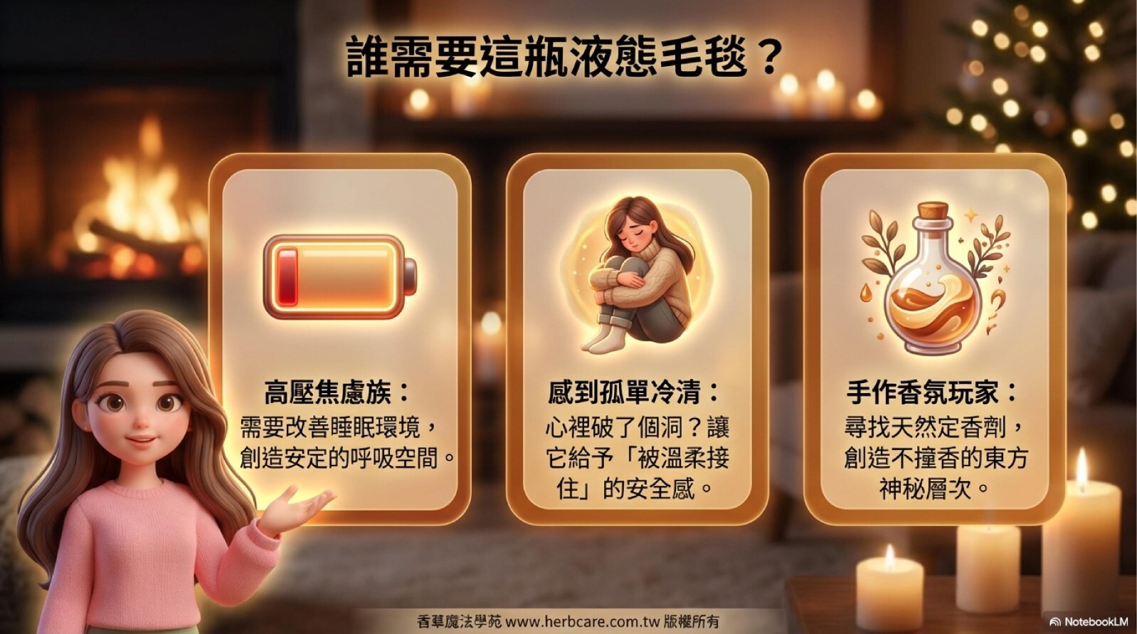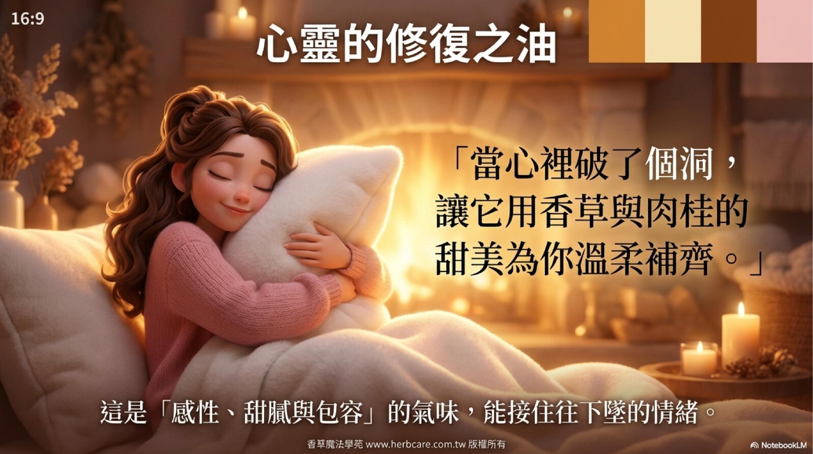 它在芳療界扮演著「超級定香劑」的角色,能將容易揮發的香氣緊緊抓住。在心靈層面上,它也是如此——它能接住那些破碎、受傷的情緒,用溫暖的糖漿般質感將你包裹起來,告訴你:「沒事了,我在這裡。」