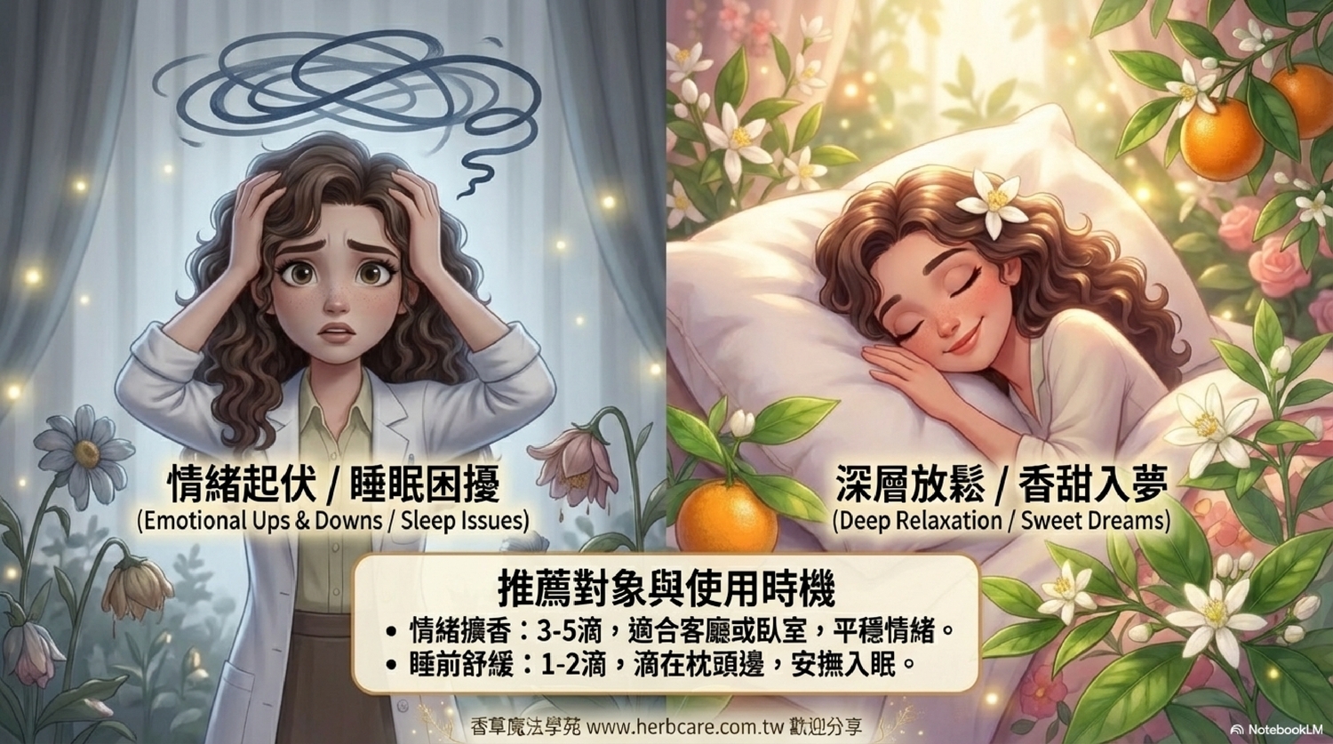 需求/時間點:當你感到情緒緊繃、心神不寧時;或是想在睡前、沐浴時,為自己創造一個寧靜的空間。