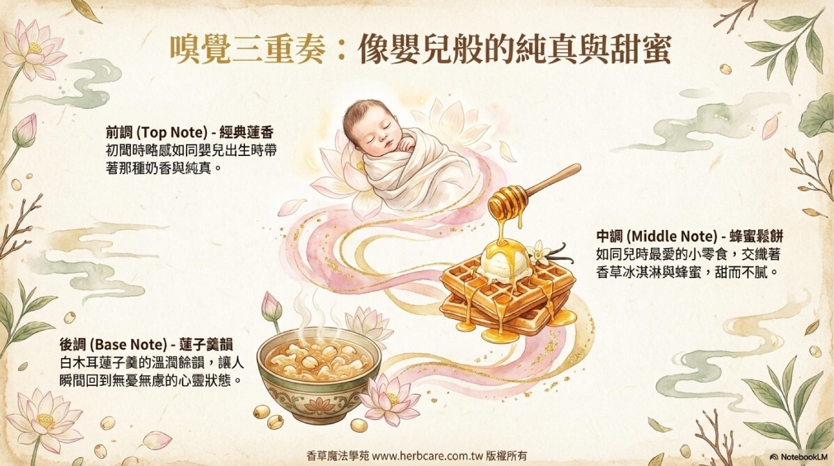 在佛教中,粉蓮花象徵著佛陀的純潔和完美。據傳說,佛陀在出生時,每一步都有蓮花綻放。粉蓮花香味初聞時略感如同嬰兒出生時帶著那種奶香與純真,又如同兒時你最愛的小零食的誘人香味,交織著香草冰淇淋與蜂蜜,甜而不膩。這是一種能讓你瞬間回到二十年前的心靈狀態,哪怕是少年還是小娃。(注意:Attar提煉法為自然植物緩慢蒸餾過程,如精油內有類似花瓣花粉雜質實屬正常,介意者勿購。)