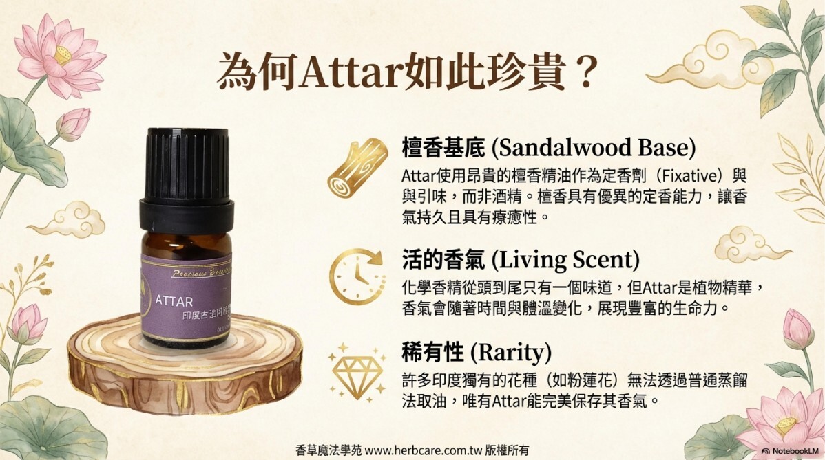 但是Attar畢竟是植物提煉,當然不是化學香精可以比擬,我們可以從以下這幾點來比較。