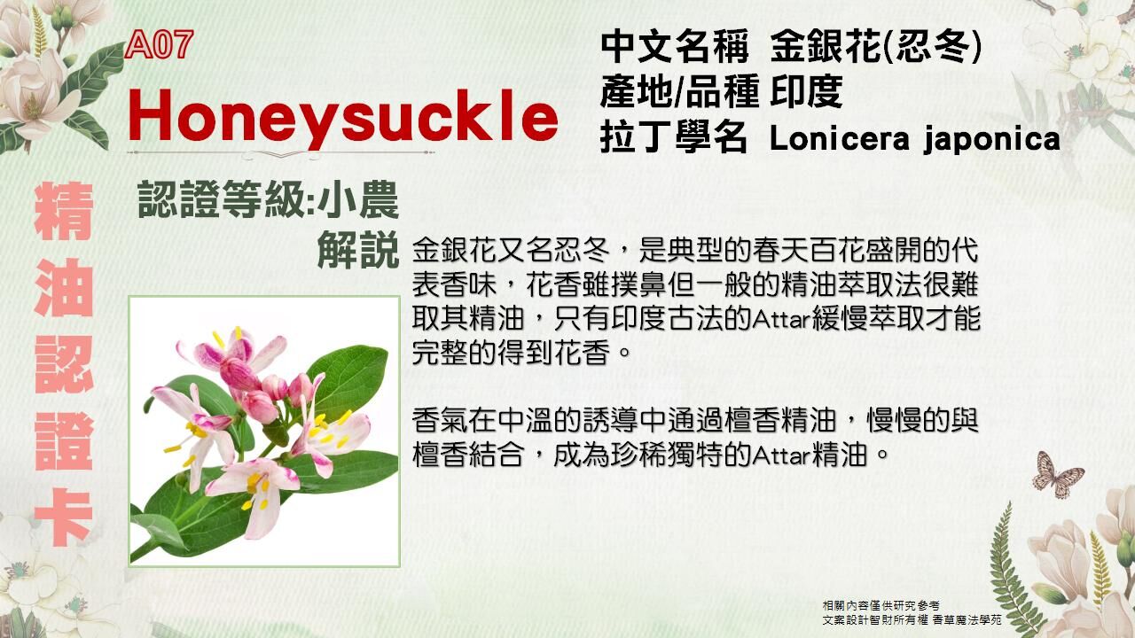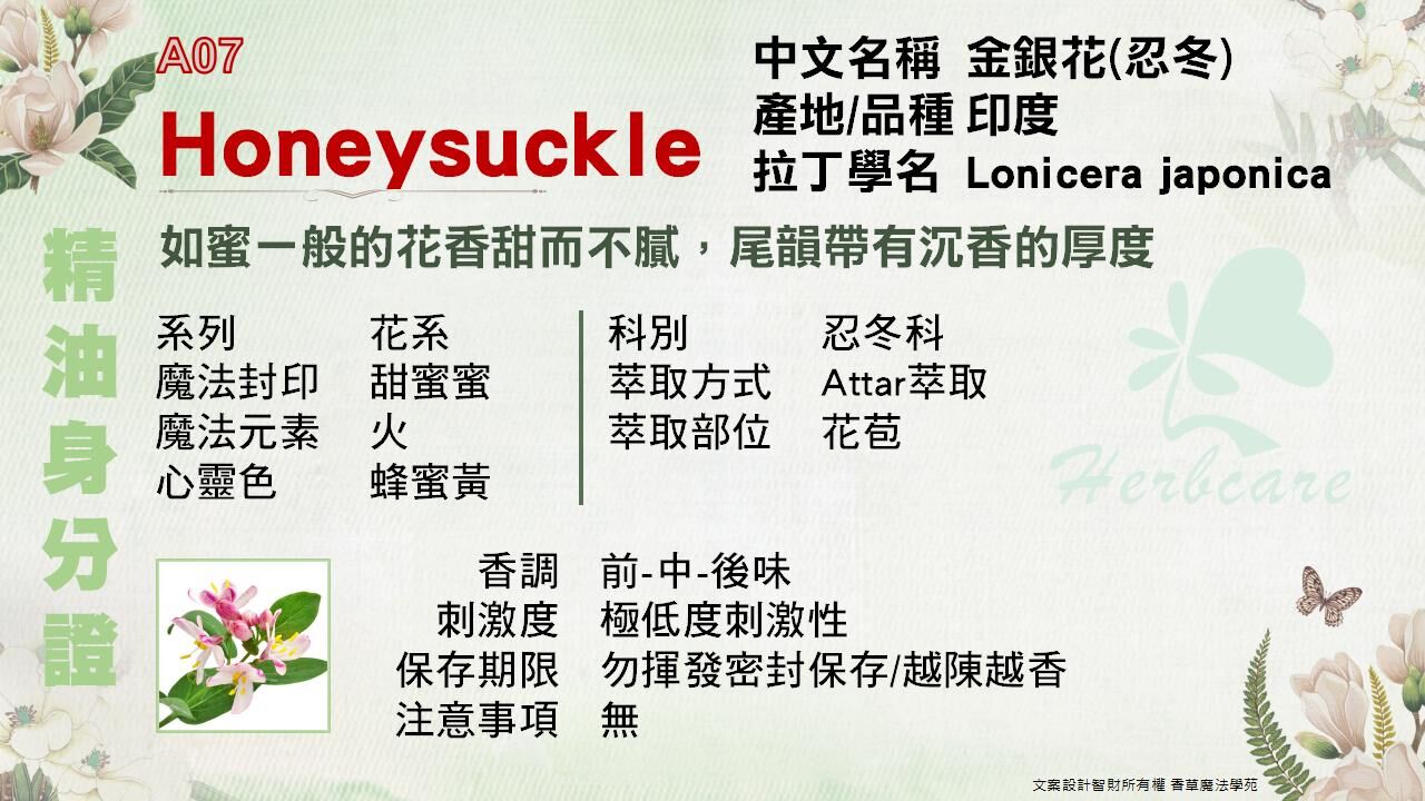 源自印度千年Attar蒸餾工藝,以忍冬花苞低溫凝萃,完整保留芳樟醇、金合歡醇等珍貴成分。獨特「新娘香調」由清甜奶香漸變至微苦木質,如晨妝新娘般優雅純淨,適合打造個人香域與肌膚保養,五行屬金特性更能強化氣場防護。