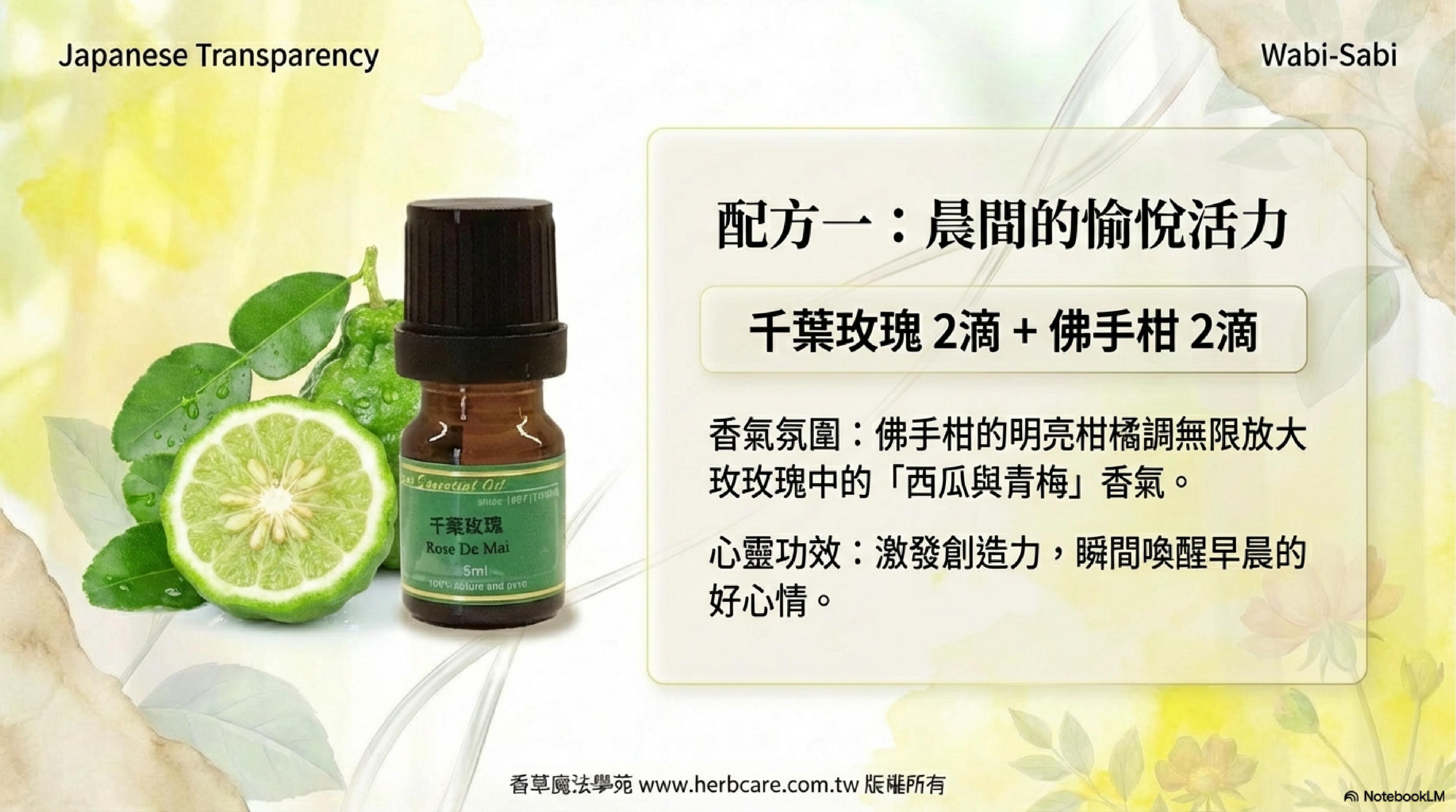 佛手柑精油:佛手柑精油帶有明亮、清新、柑橘調的香氣,與千葉玫瑰精油的結合可以產生愉悅、振奮和活力的效果。這對於提升情緒、增加快樂感和激發創造力很有幫助。