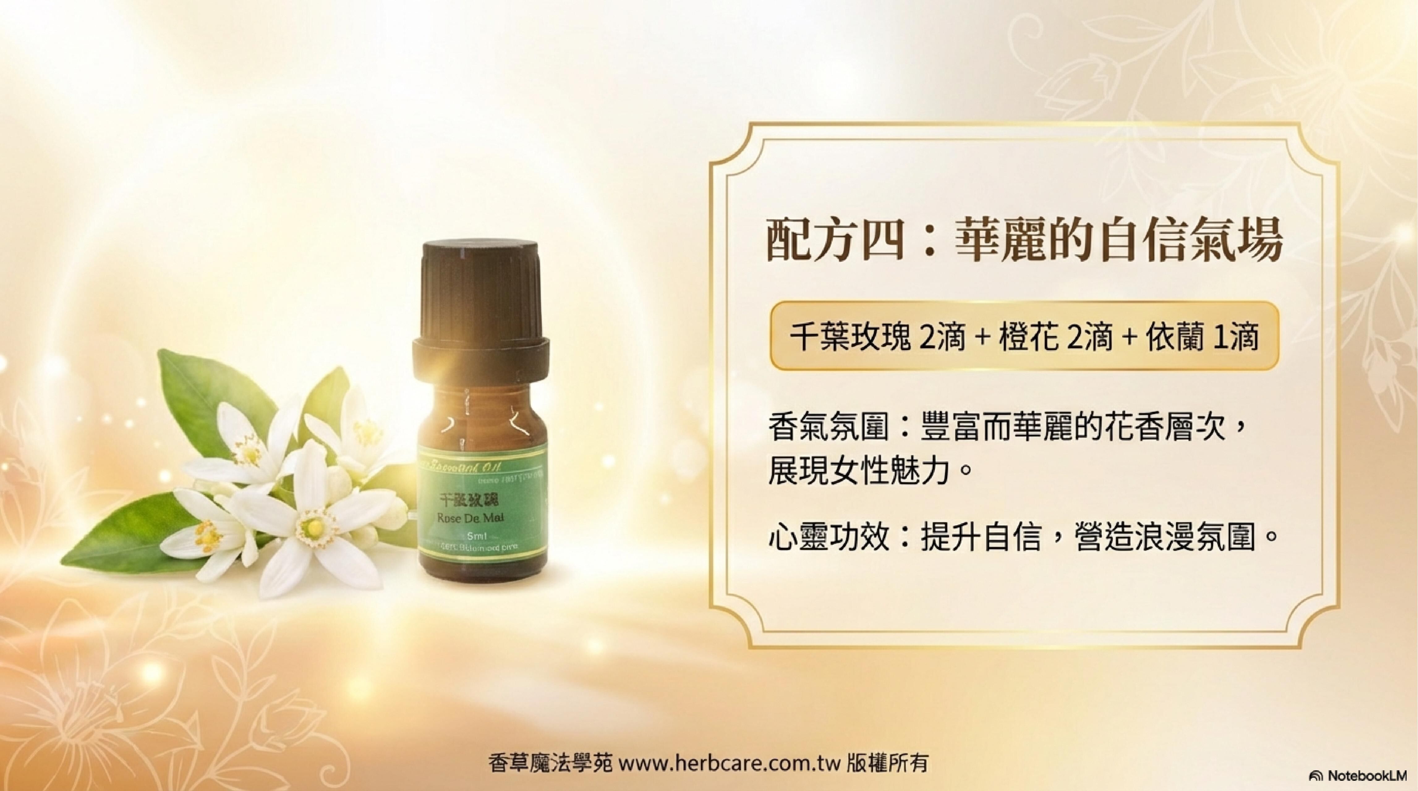 橙花精油:橙花精油帶有甜美、花香、柑橘調的香氣,與千葉玫瑰精油的混合可以營造出豐富、華麗的香氣。這對於提升情緒、舒緩焦慮和增加自信心具有幫助。