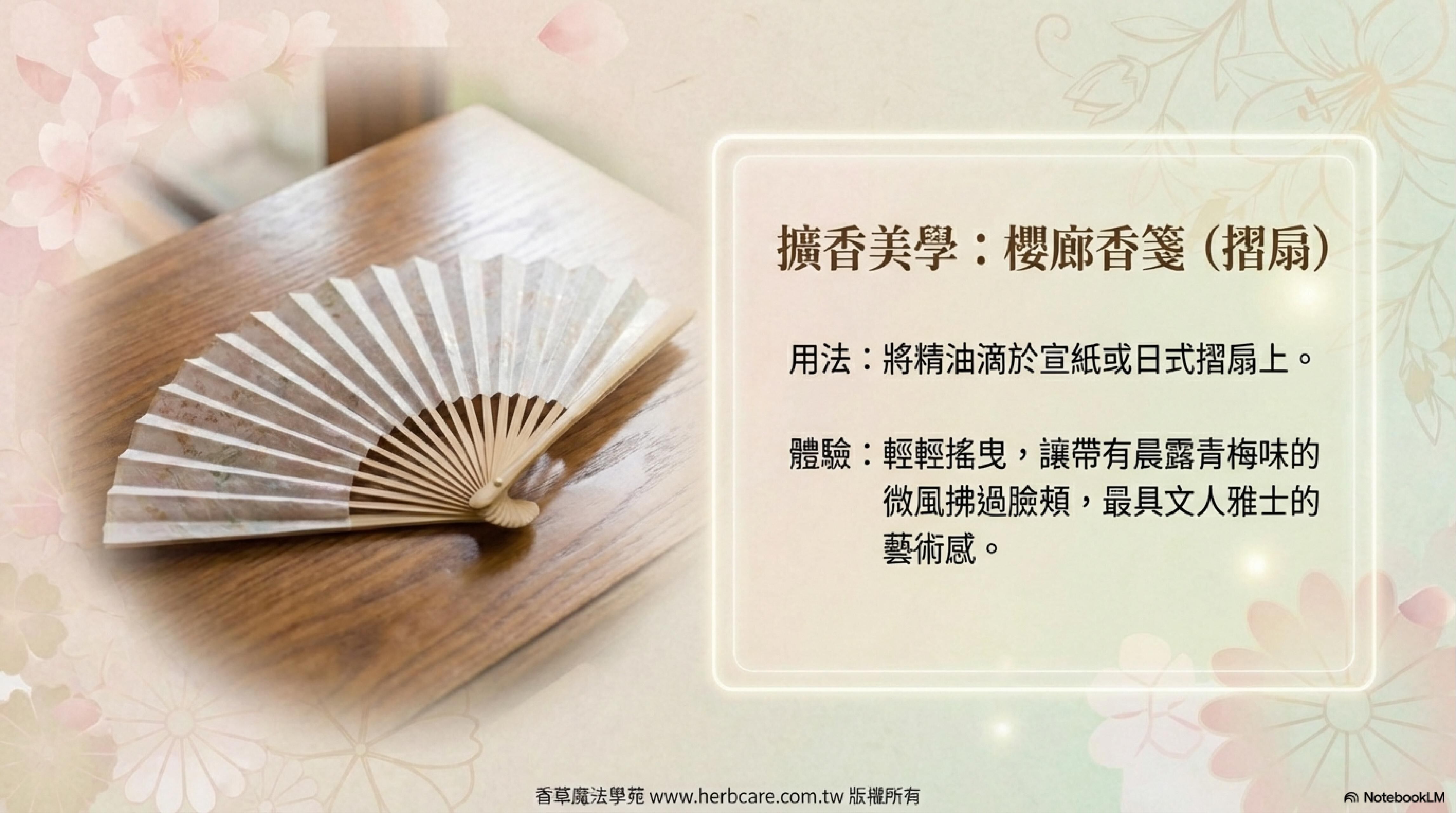 千葉玫瑰2滴 + 扁柏1滴|滴於宣紙摺扇上輕搖