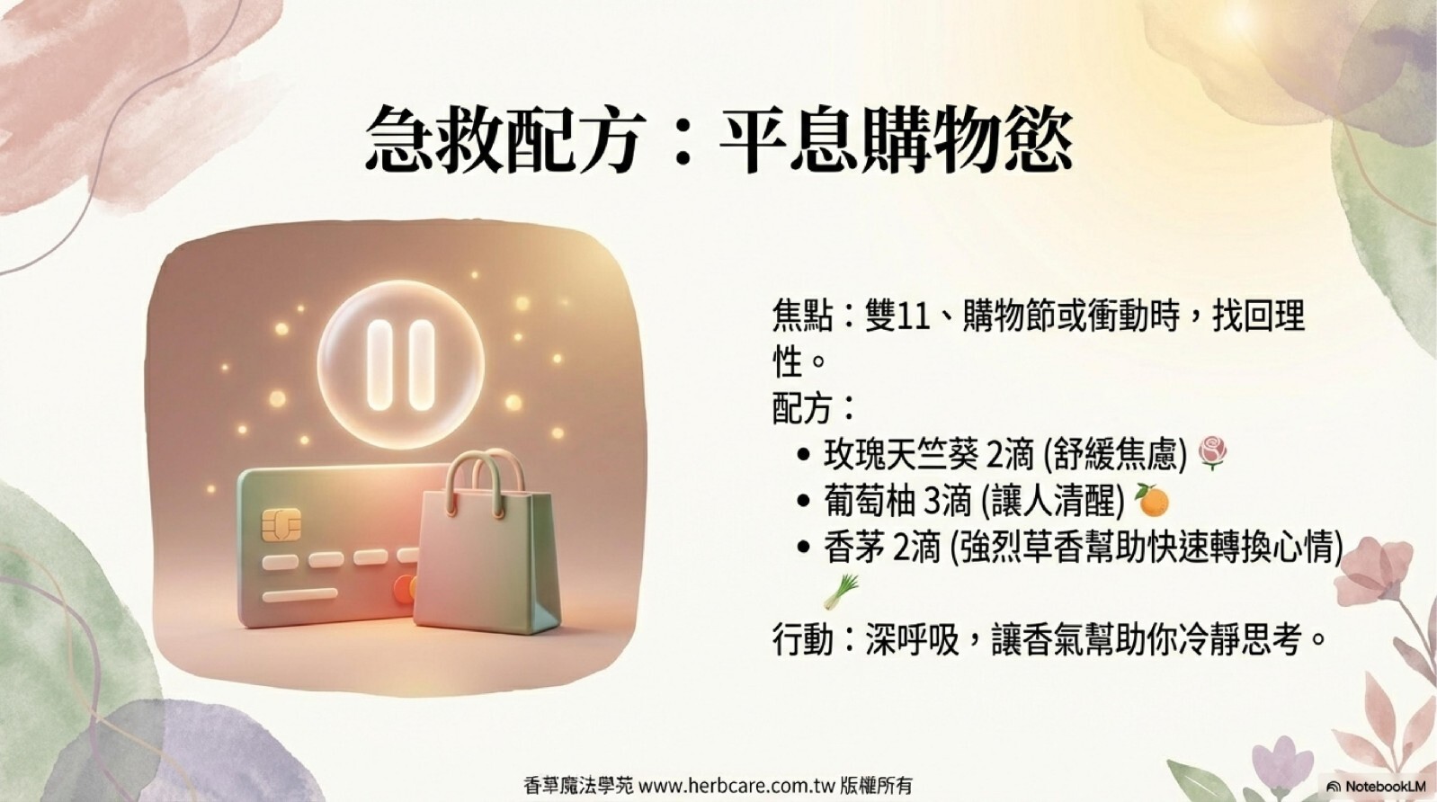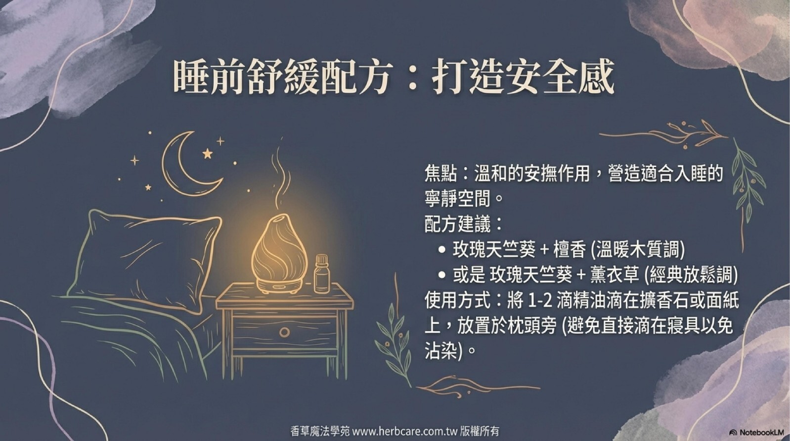 需求/時間點:當你感到情緒緊繃、心神不寧時;或是想在睡前,為自己創造一個寧靜的空間。