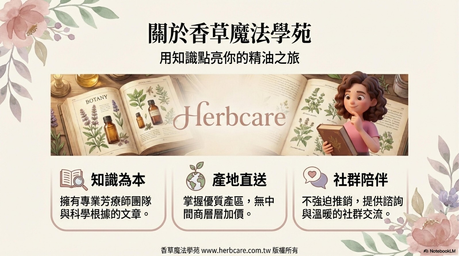 創立於20多年前,香草魔法學苑不只是個精油網站,更是由一群熱愛精油的同好共同打造的學習社群。我們相信,精油不只是商品,而是能優化身心靈的美好工具。因此,我們致力於「用知識包裝商品」,讓你先了解精油,再找到最適合你的選擇。