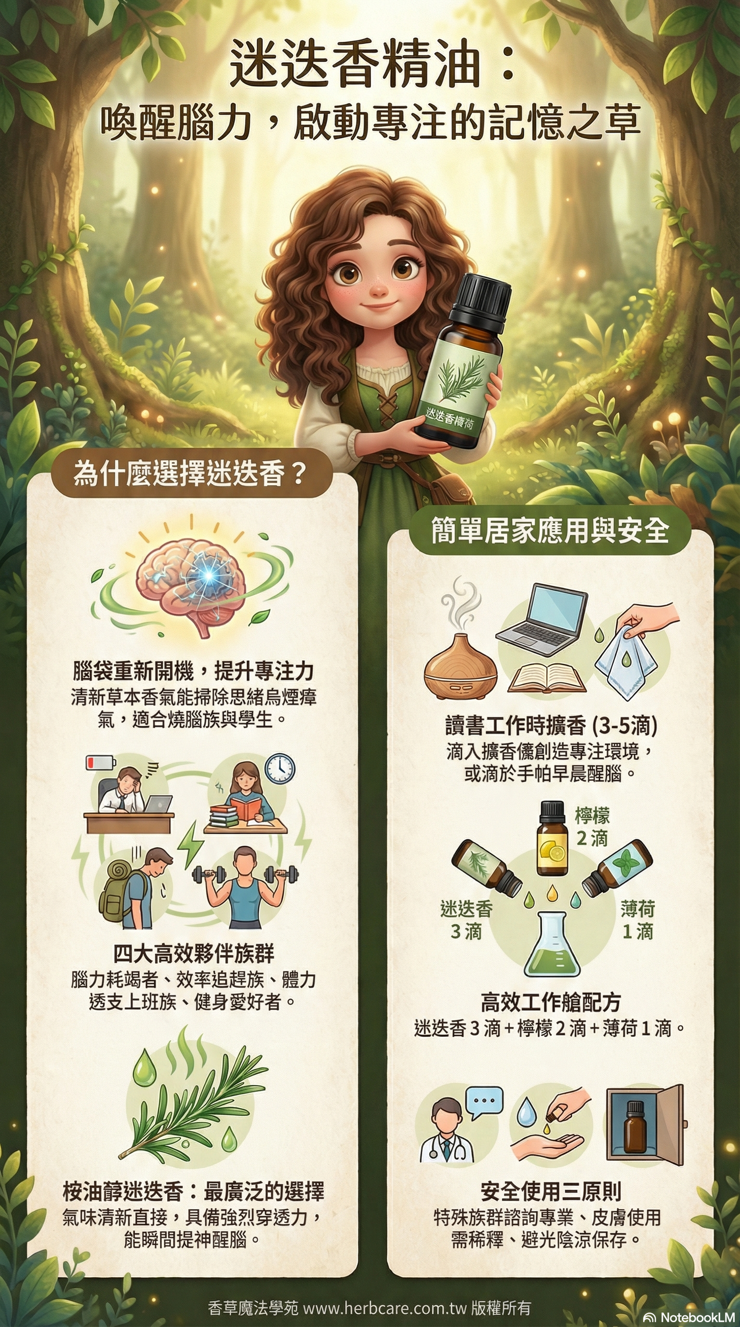 你是否常感到思緒混沌、精神不濟,想專心卻總是東飄西盪?迷迭香精油,這款被古羅馬人譽為「記憶之草」的香草,正是你急需的腦力加速器。它清新的草本香氣,彷彿能瞬間掃除腦中的烏煙瘴氣,為你的思緒開啟一扇明亮的窗。無論是準備應對重要會議、準備考試,或是想為疲憊的身體注入一股清新活力,迷迭香精油都能成為你的得力夥伴。它不只是一款提神醒腦的工具,更是一種提醒你專注當下、找回清晰自我的生活儀式。讓迷迭香的青綠靈魂,為你的生活注入一劑高效、充滿能量的強心針。