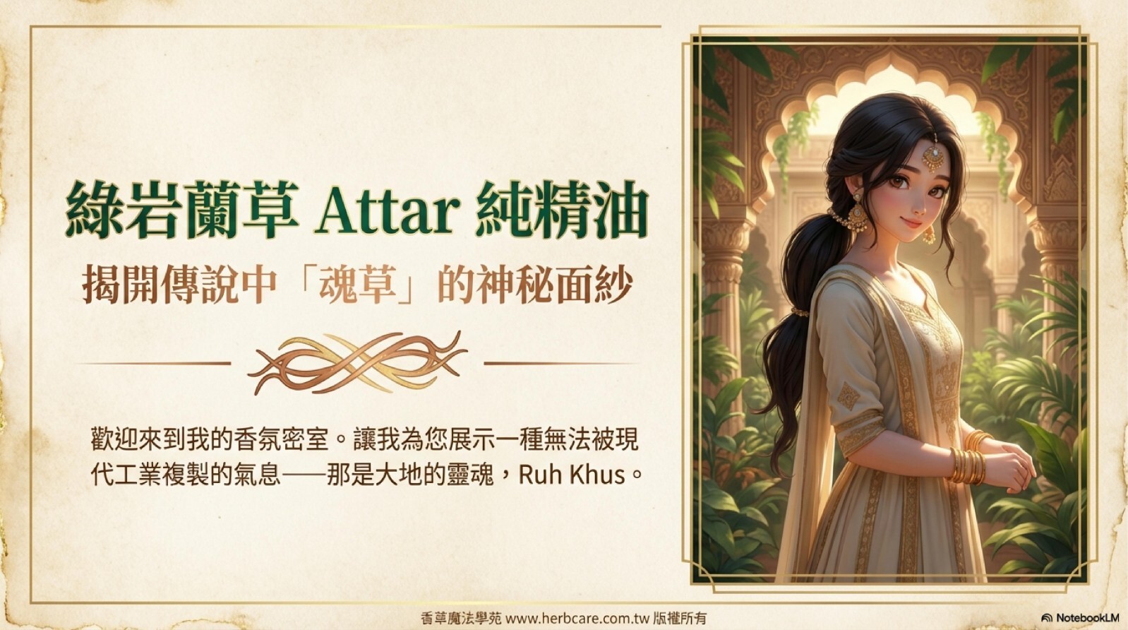 全世界獨一無二的Attar提煉法而得的綠岩蘭草Attar,印度語稱為「ruh khus」。就算是資深的芳療師也未必見過用過,但只要你接觸過,就會為之神魂顛倒,一心嚮往之。我們為您揭開「ruh khus」神秘檔案。