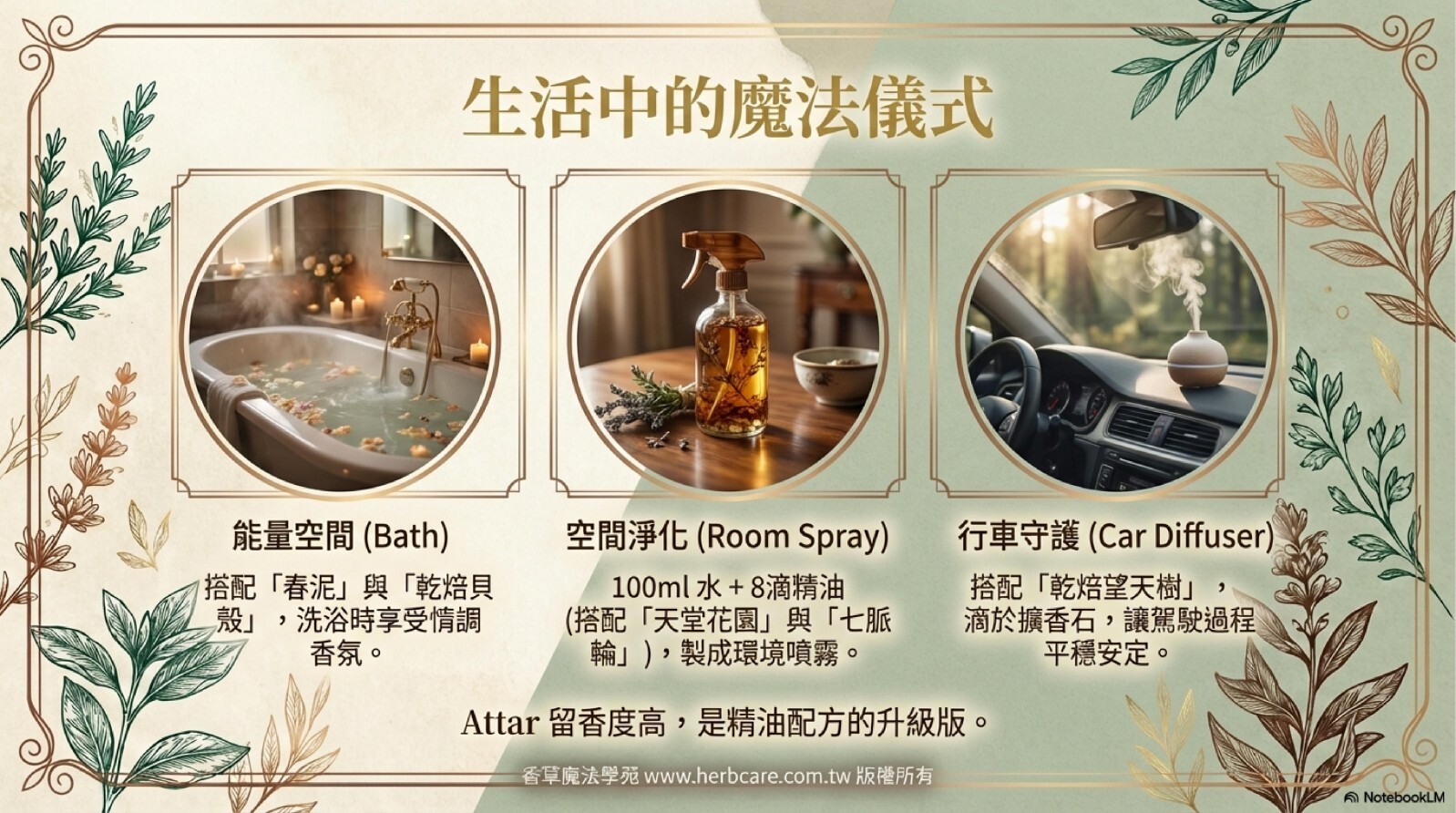 所以你當然可以把阿塔精油做為妳的精油配方,同時因為阿塔精油留香度非常高,也都有非常棒的功效,你可以把它想成是精油配方的升級版,不管作為按摩、擴香,或是其他你常用的精油用途,只要你捨得(因為阿塔精油價格都不便宜),它絕對讓你的芳療享受更上一層樓。