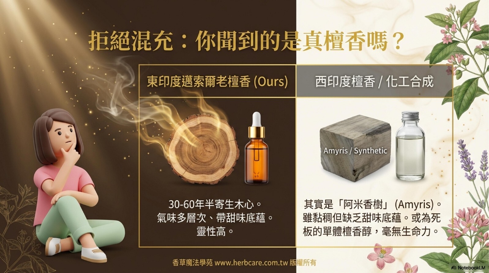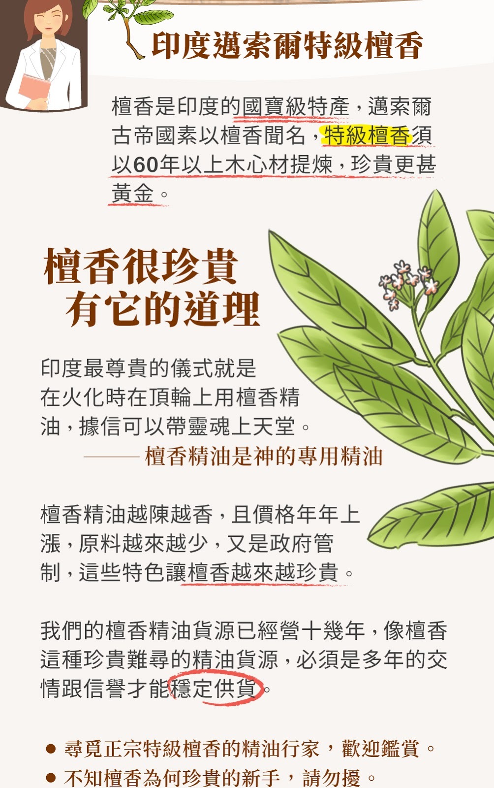 檀香又是如此珍稀且高價的精油,可想而見,你只能在信任的品牌來源,才能買到真正的檀香精油。