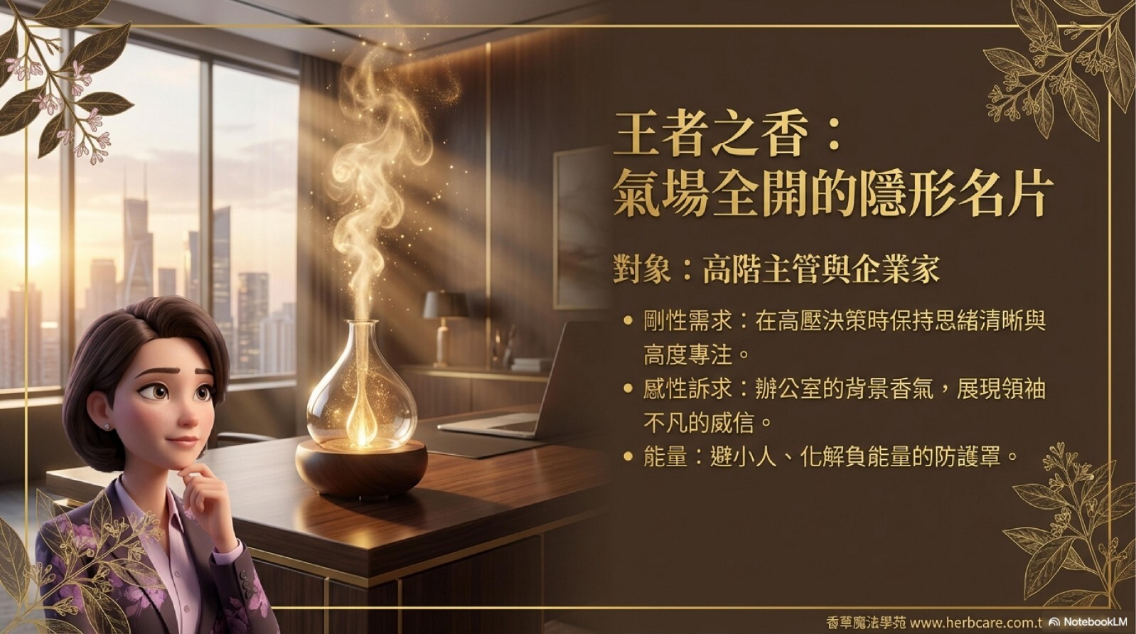 檀香也是王者之香,所以做為主管、領導人辦公室的背景香水,氣質非凡。