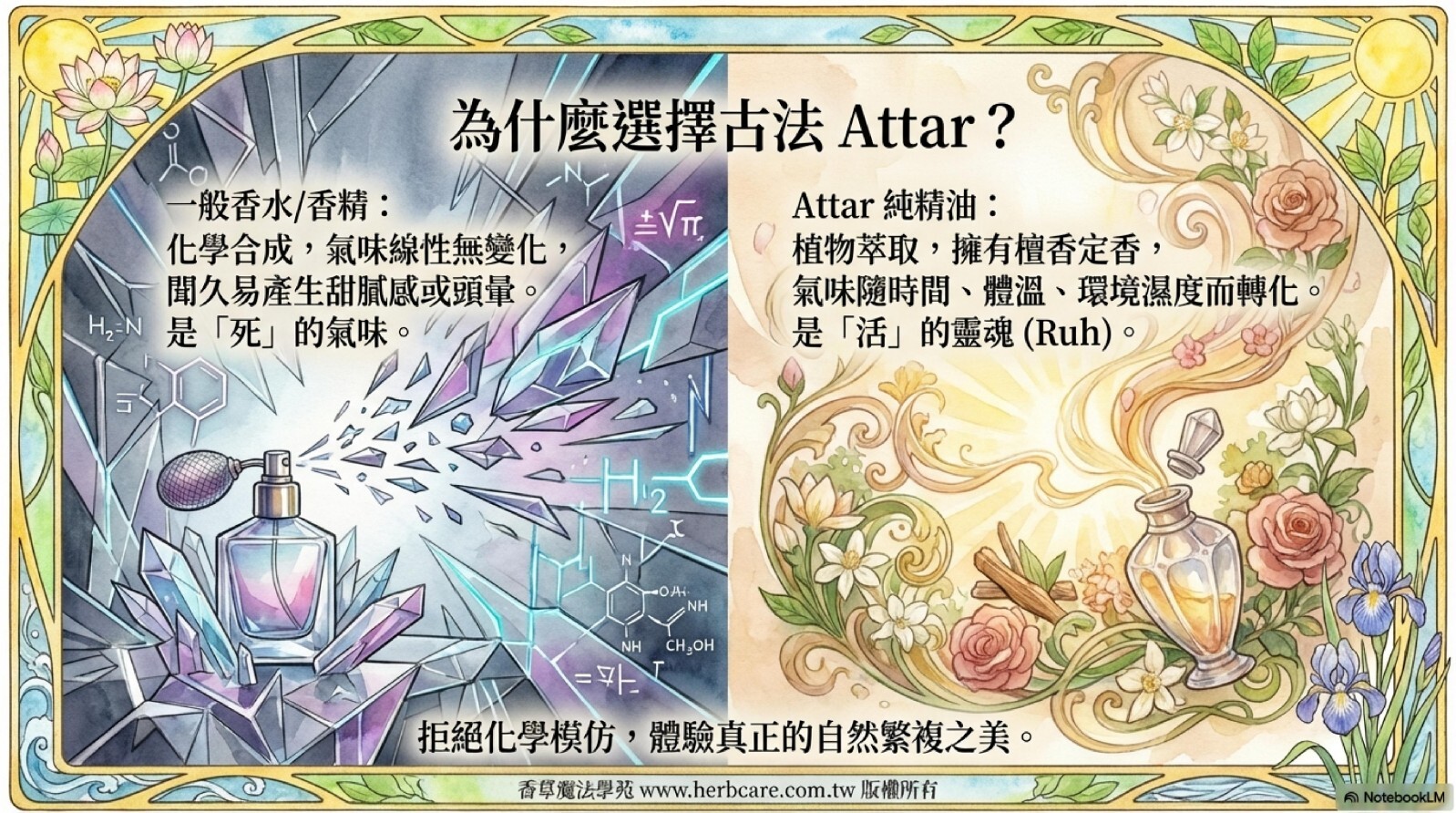 但是Attar畢竟是植物提煉,當然不是化學香精可以比擬,我們可以從以下這幾點來比較。