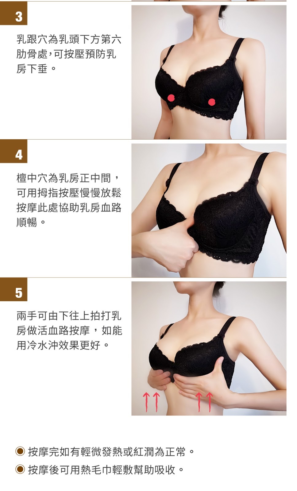 適合搭配按摩穴位:鷹窗穴、天溪穴、乳根穴、天池穴、膻中穴。