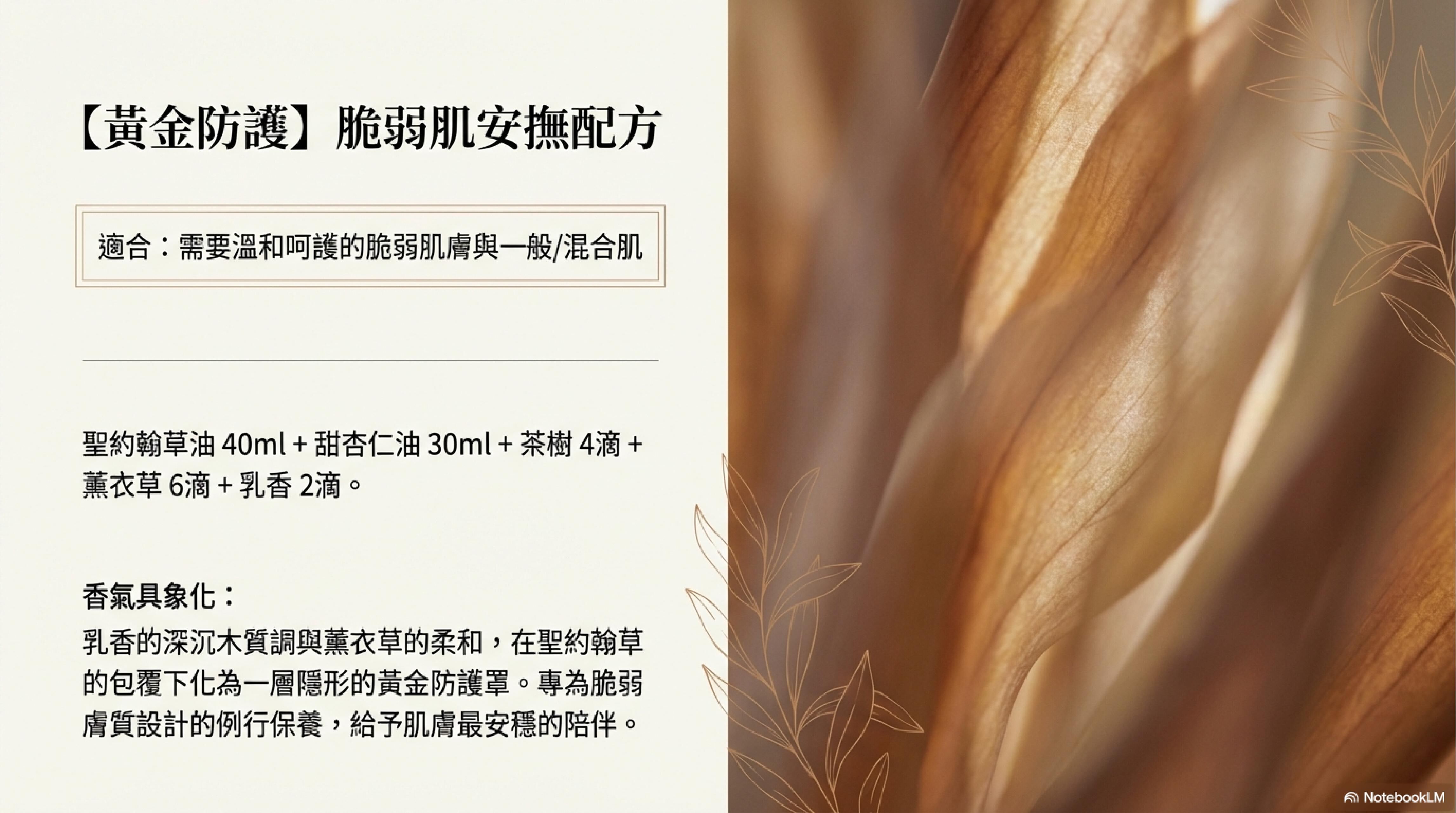 基底油:聖約翰草油 40ml、甜杏仁油 30ml