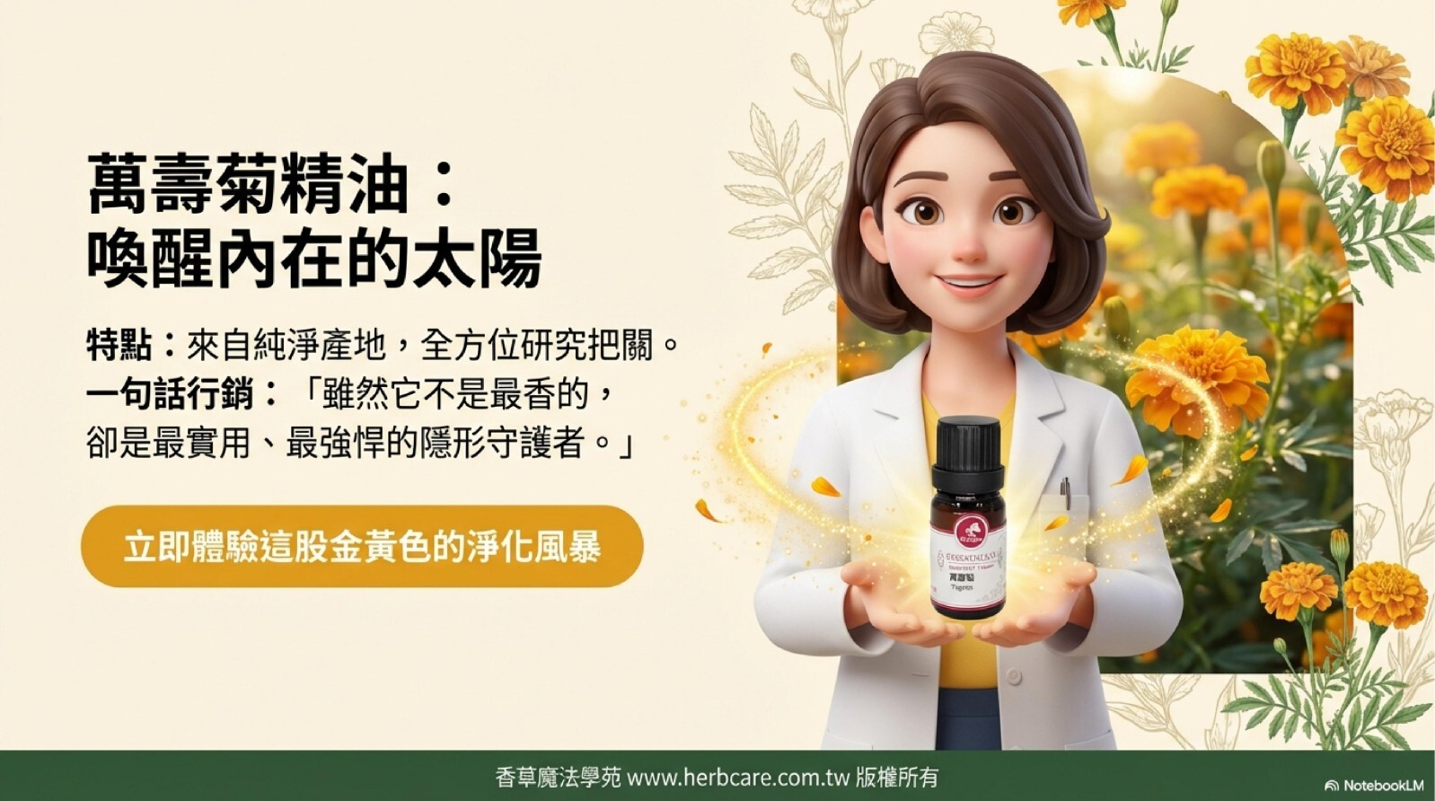 萬壽菊精油效果強大,但含有萬壽菊酮且具光敏性,請嚴格遵守:
