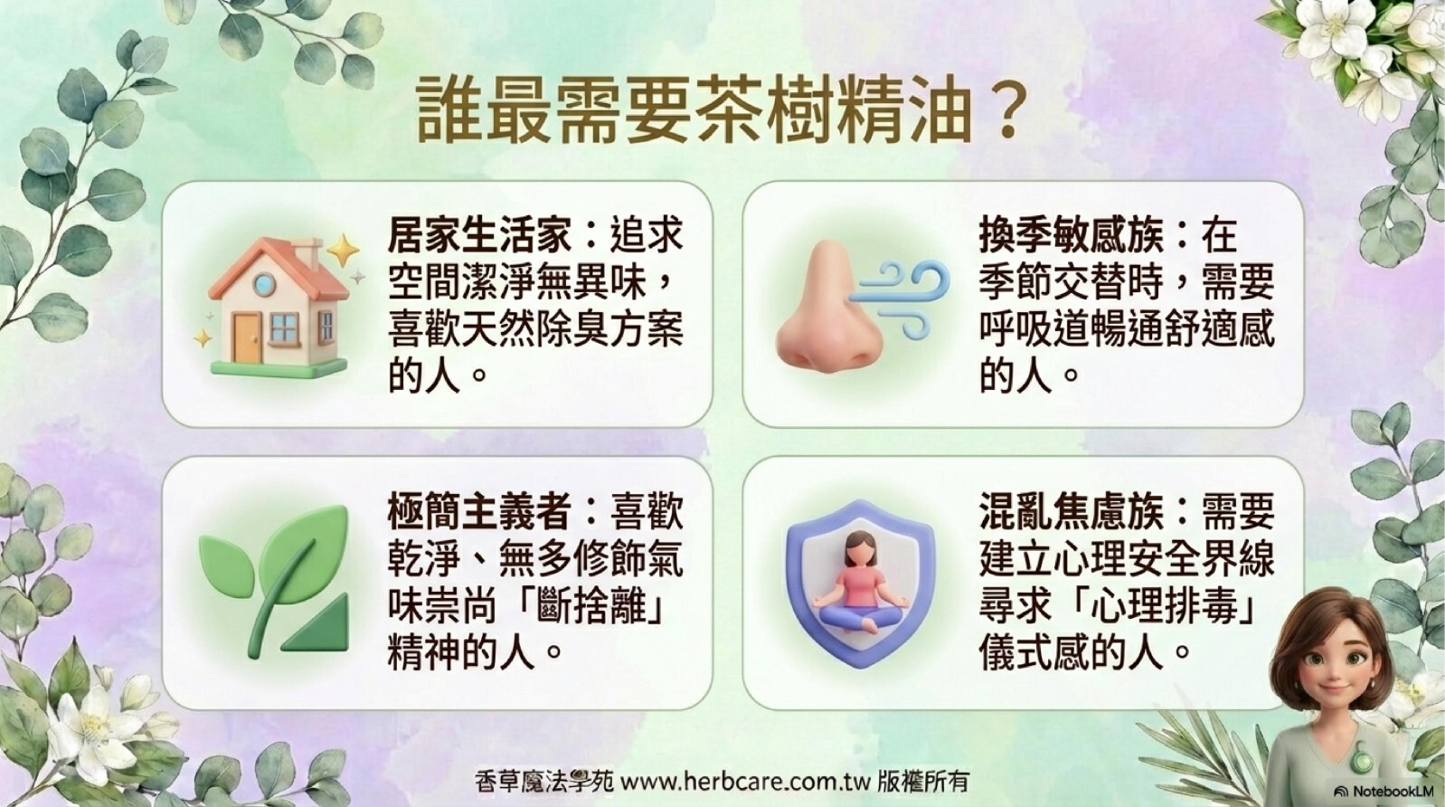如果你是以下族群,茶樹精油絕對是你的淨化守護神: