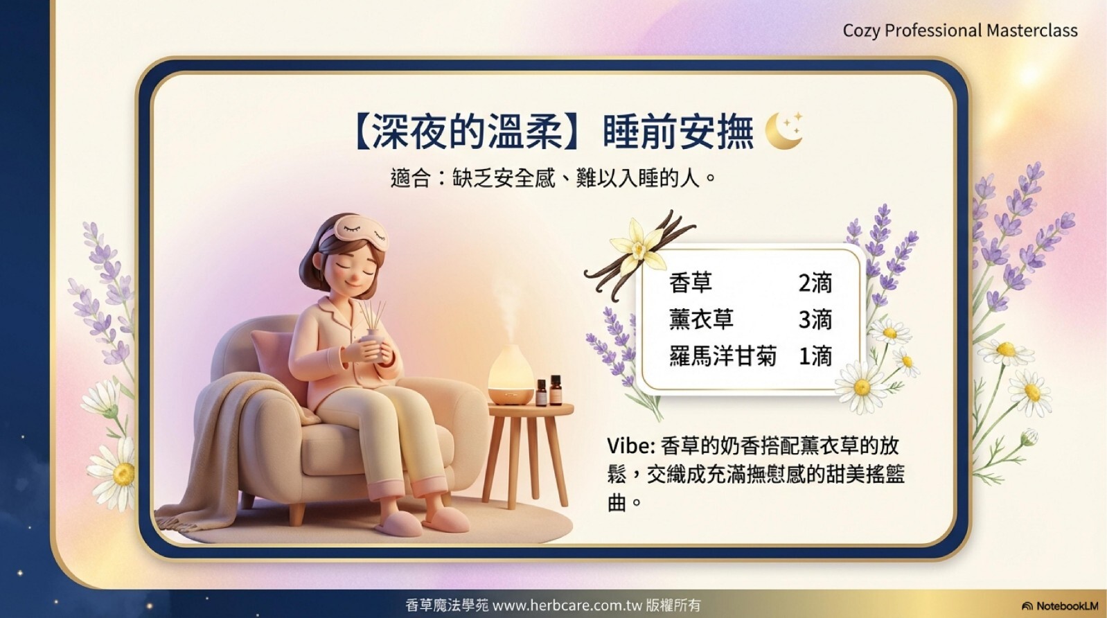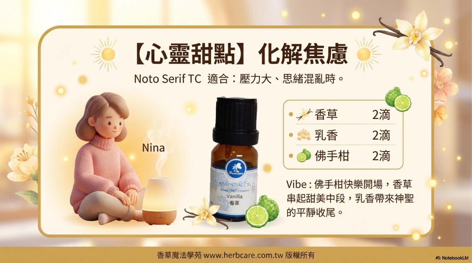 | A2: 沒錯!香草精油的香氣具有溫和的安撫、鎮靜作用,能幫助你舒緩焦慮、緊張的情緒,進而營造一個適合入睡的環境。你可以在睡前用它來擴香或進行輕柔的按摩,幫助你放鬆身心,更容易進入夢鄉。 |