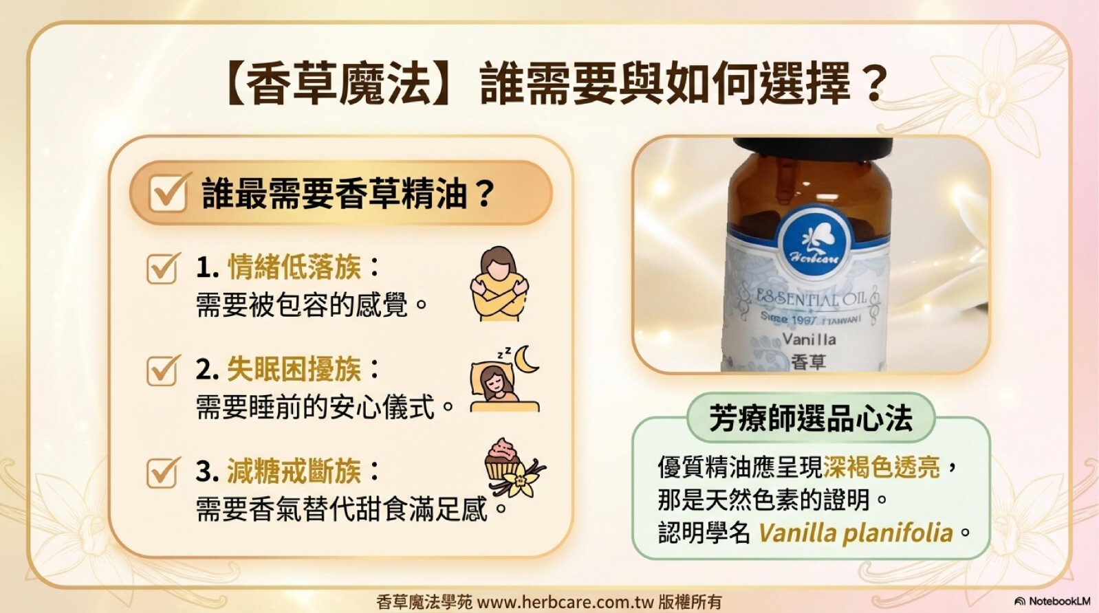 | Q1: 為什麼香草精油聞起來這麼甜美溫暖? |