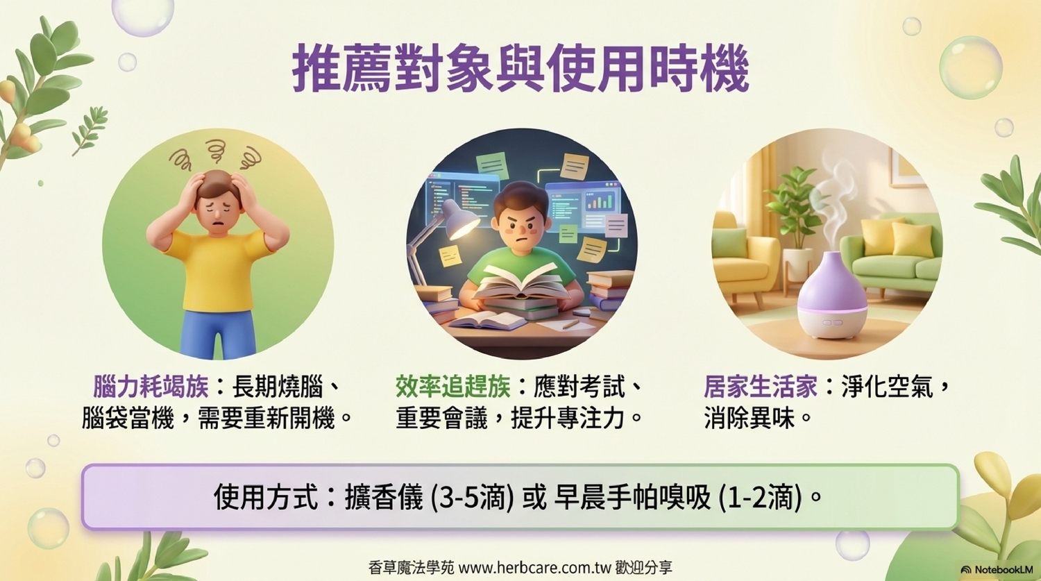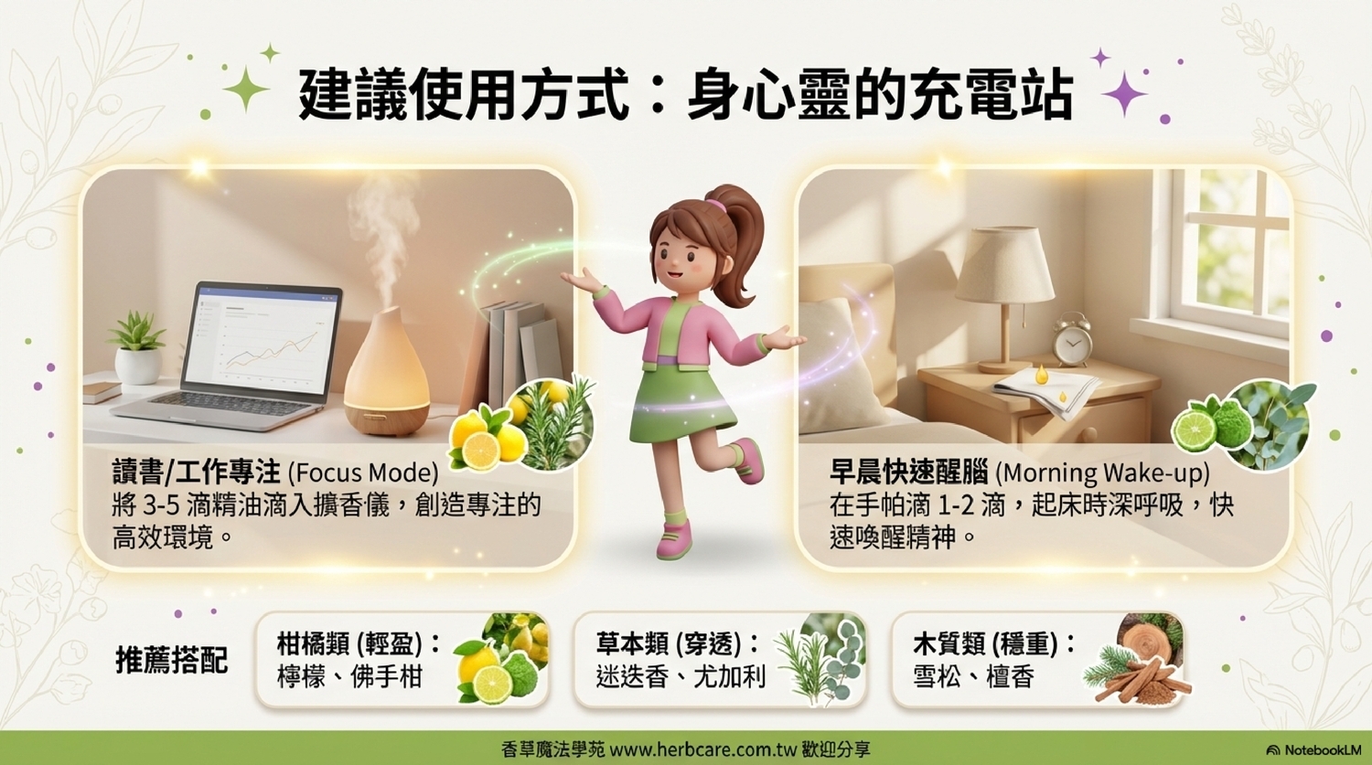 需求/時間點:當你感到精神渙散、需要集中精神時;或是工作或讀書前,想為自己創造一個專注的環境。