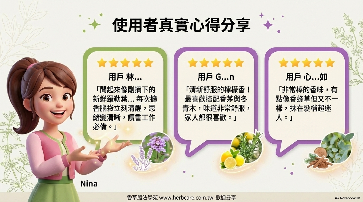 在這裡,我們分享一些用戶的真實體驗,讓您感受西班牙馬鞭草精油在生活中的溫柔力量。