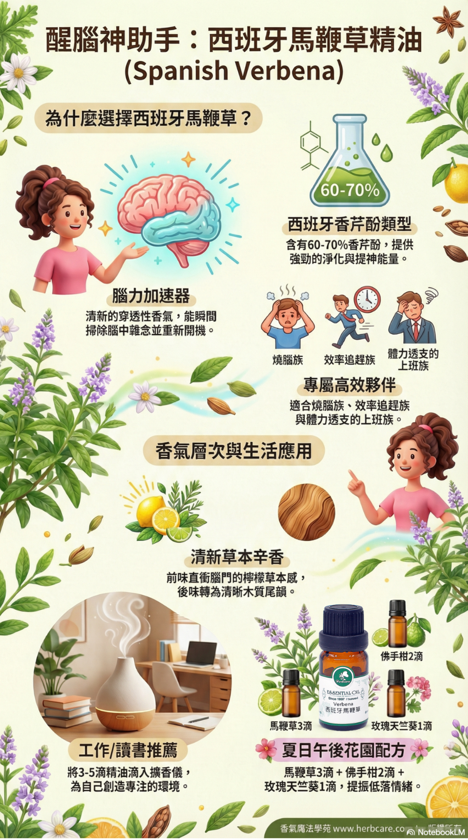 你是否常感到思緒混沌、精神不濟,想專心卻總是東飄西盪?西班牙馬鞭草精油,這款帶有強烈草本與辛香氣息的精油,正是你的腦力加速器。它清新的穿透性香氣,彷彿能瞬間掃除腦中的雜念,為你的思緒開啟一扇明亮的窗。西班牙馬鞭草在古文明中被視為神聖與保護的象徵,其精油也承載著這份穩固的能量,能幫助你提神醒腦、找回平衡。無論是想應對重要會議、準備考試,或是想為疲憊的身體注入一股清新活力,西班牙馬鞭草精油都能成為你的得力夥伴。它不只是一款精油,更是一種專注、清晰的生活態度。讓西班牙馬鞭草的清新力量,為你的身心靈注入一劑高效、充滿能量的強心針。