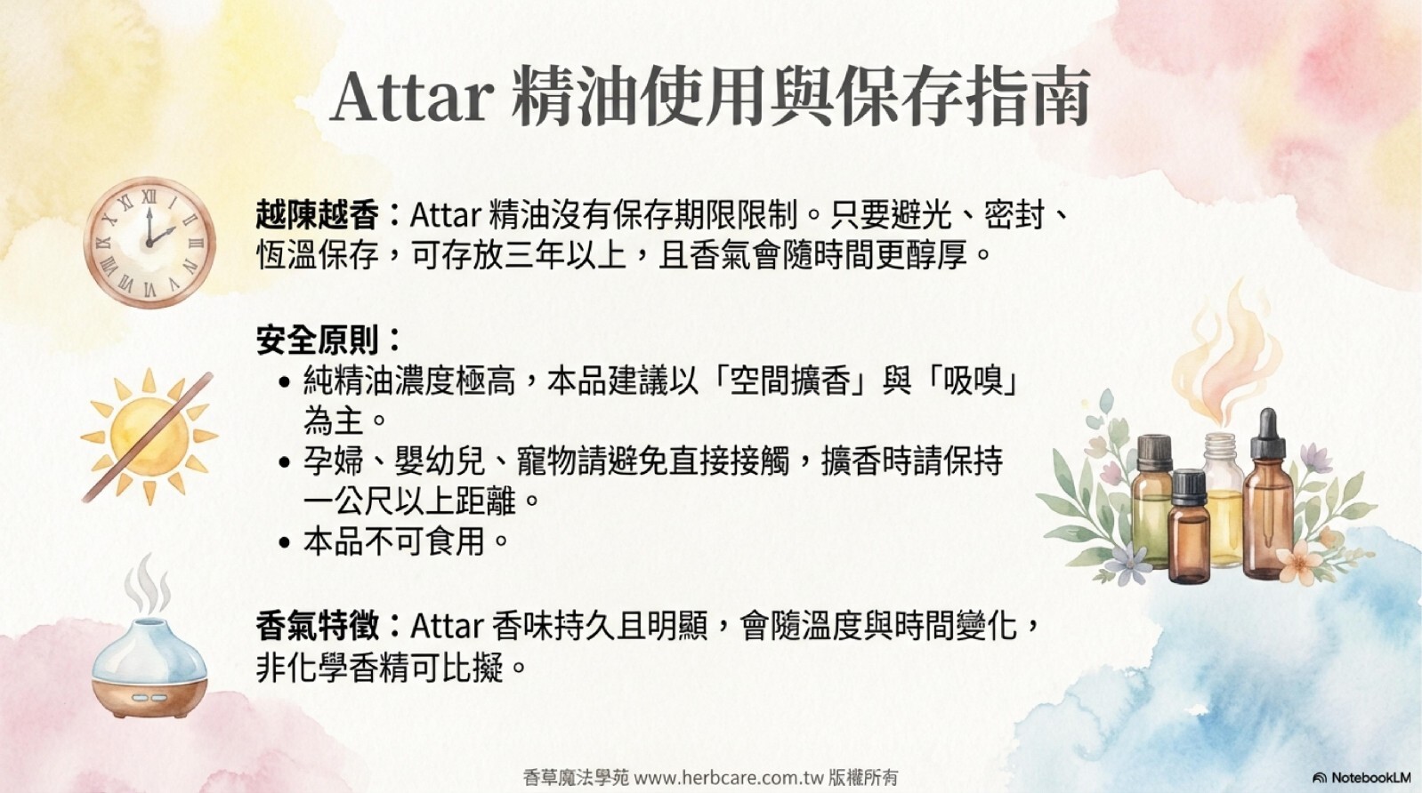 但是Attar畢竟是植物提煉,當然不是化學香精可以比擬,我們可以從以下這幾點來比較。